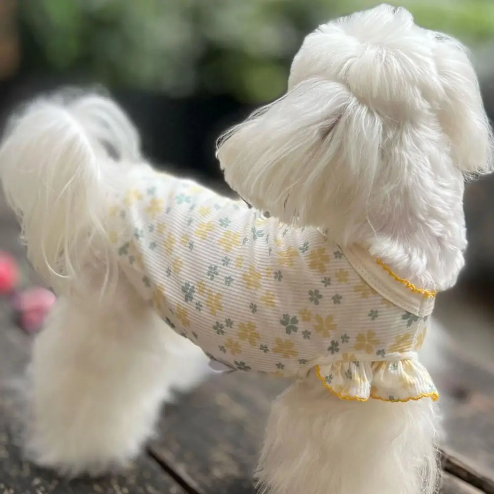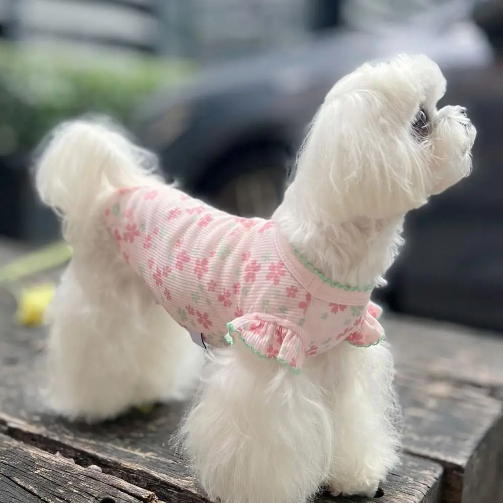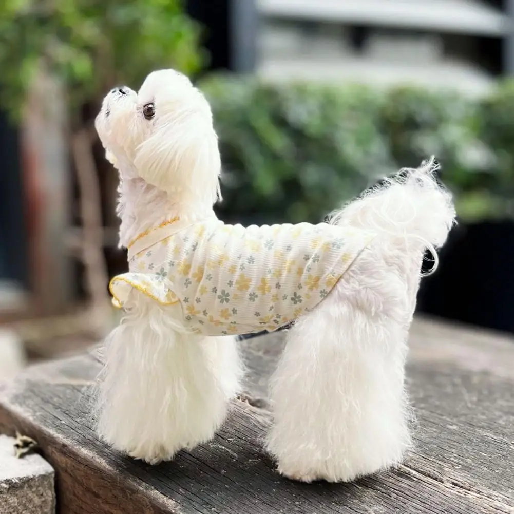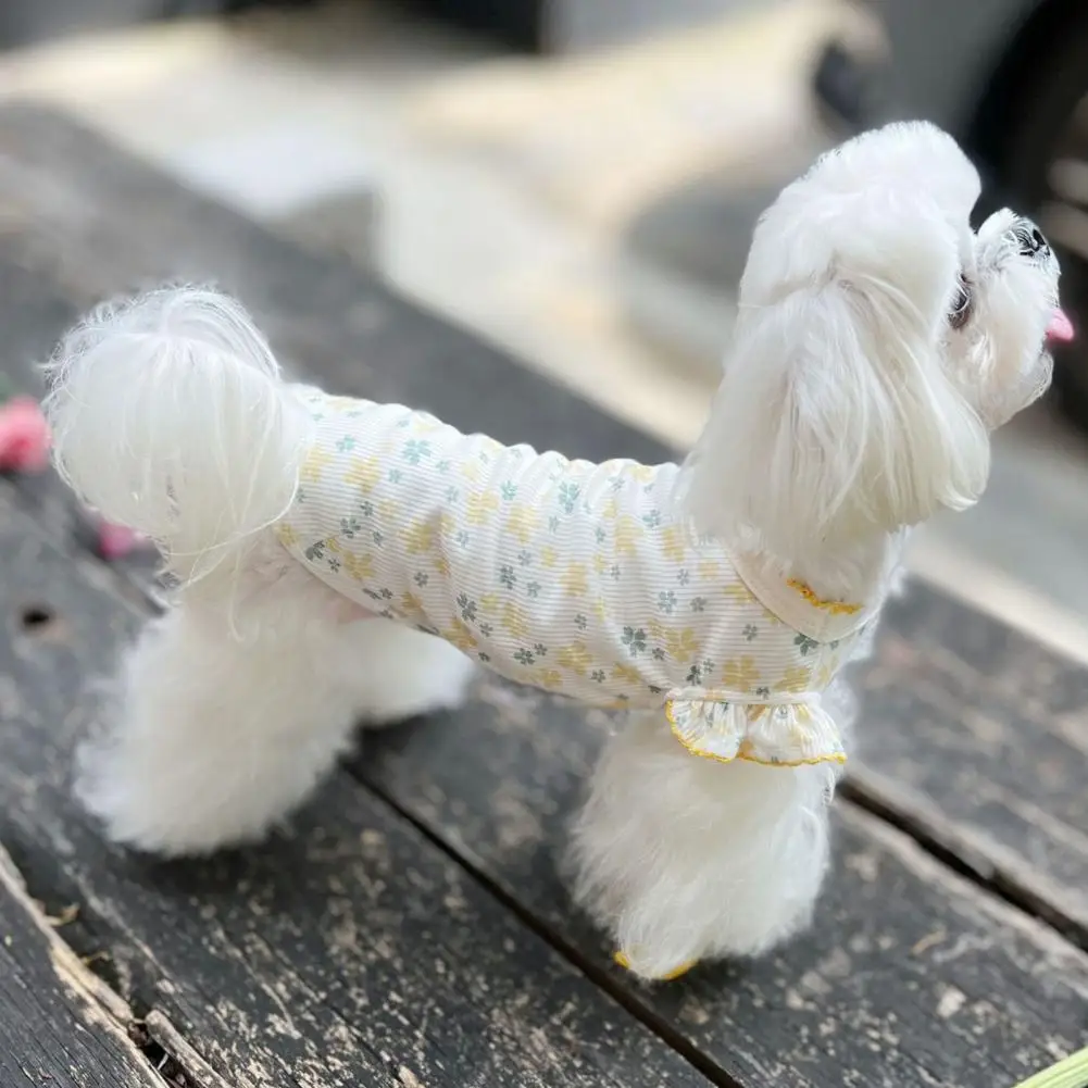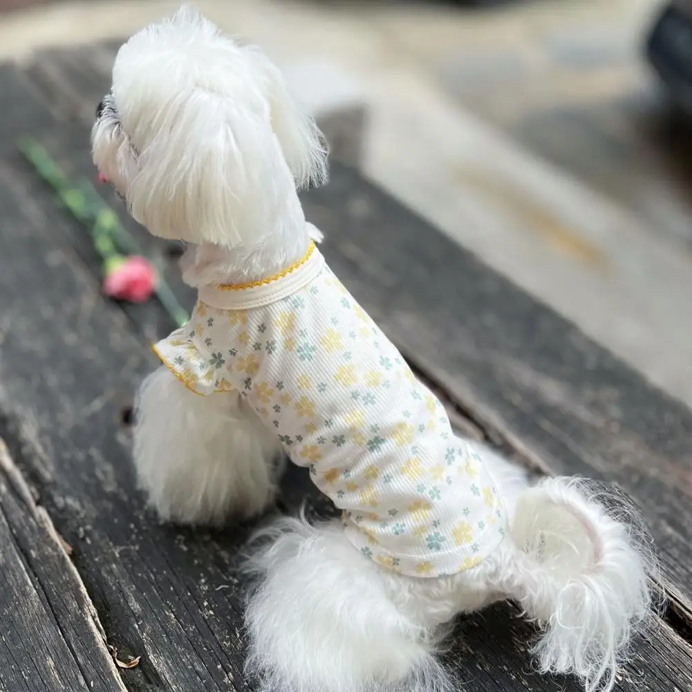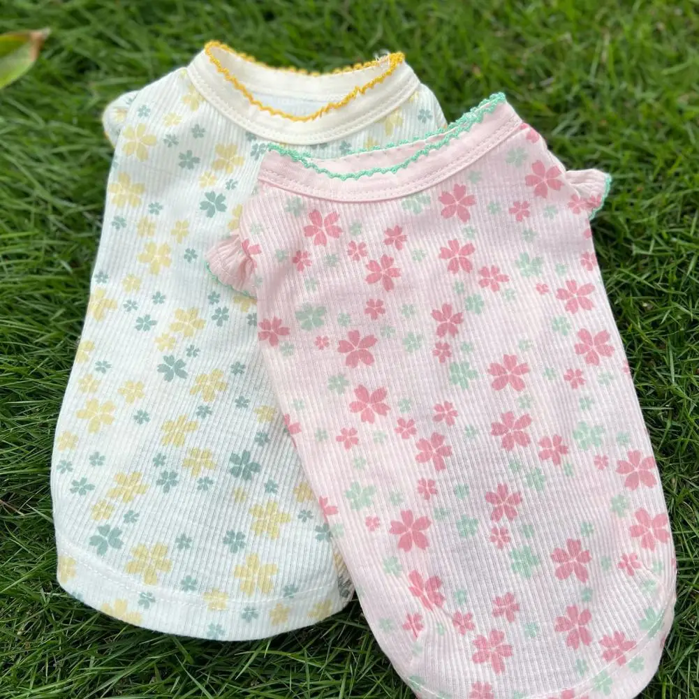 Chaleco para mascotas Mangas voladoras Estampado floral Dobladillo delicado Disfraz de perro de verano Camisa con patrón de frutas para el hogar