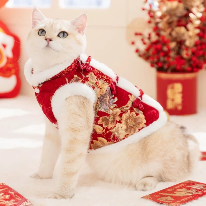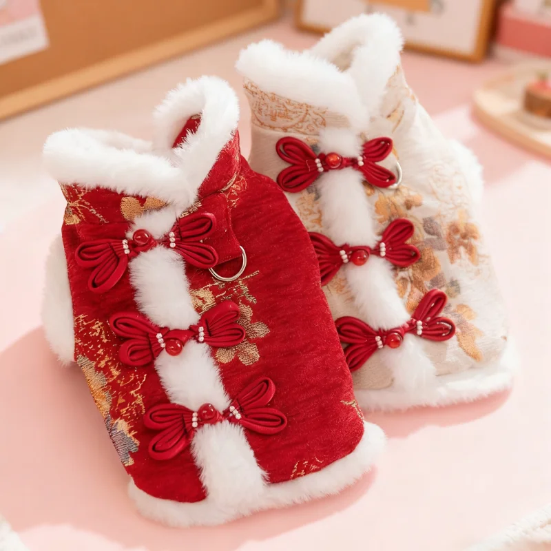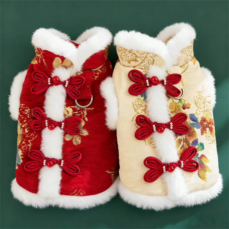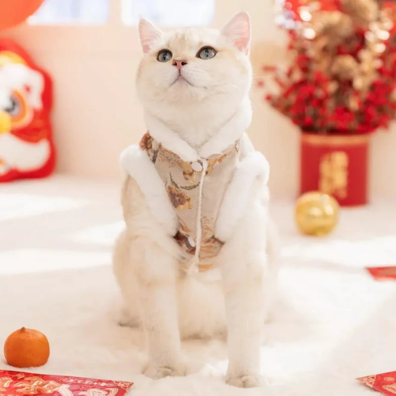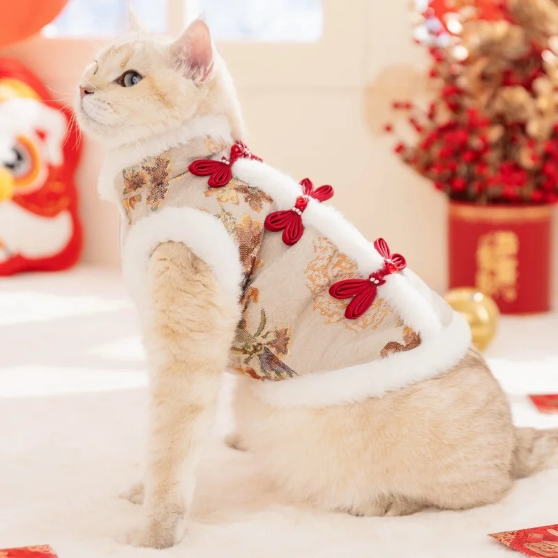 Chaqueta con chaleco para perro con estampado de moda, ropa cálida de invierno para perro, abrigo para cachorros de Año Nuevo, chaqueta suave bonita para gato, abrigo para mascota, cárdigan, abrigo para perro