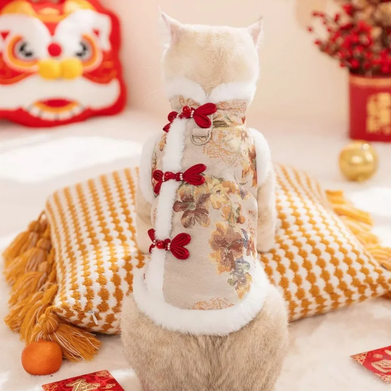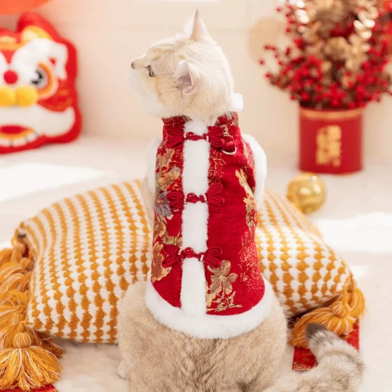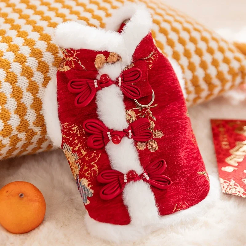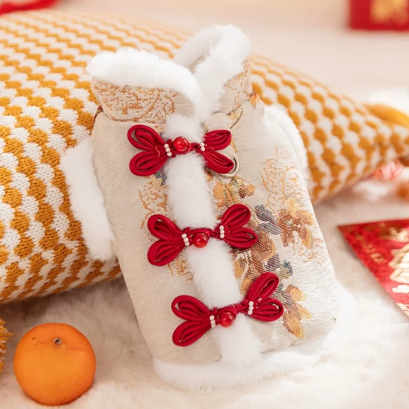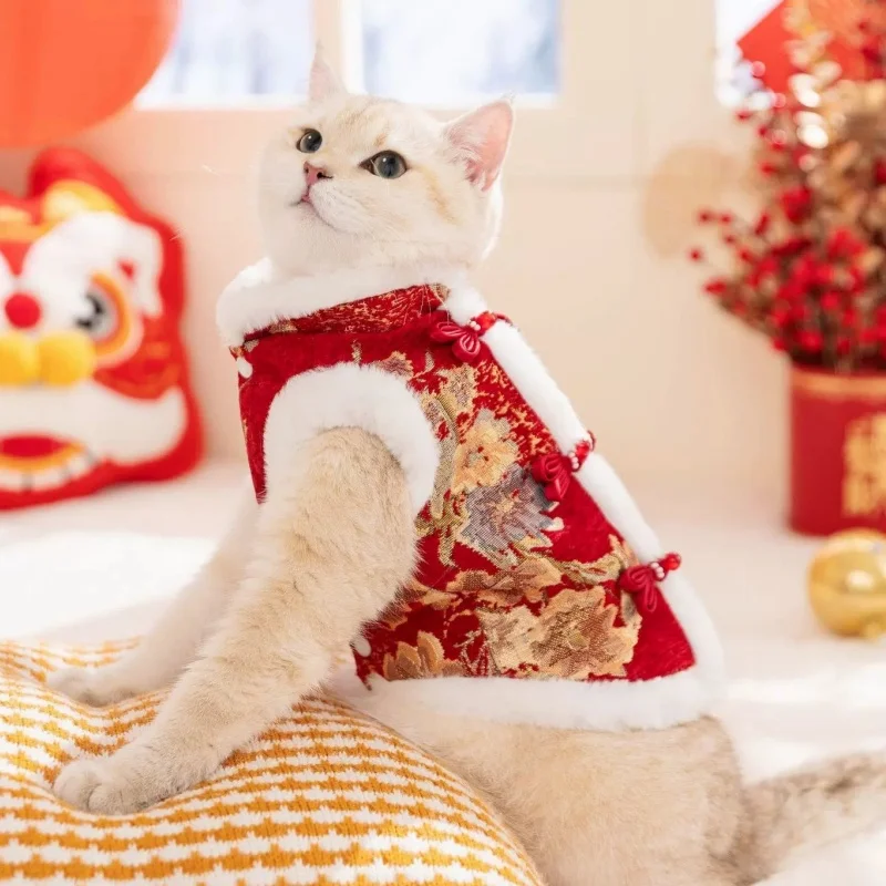 Chaqueta con chaleco para perro con estampado de moda, ropa cálida de invierno para perro, abrigo para cachorros de Año Nuevo, chaqueta suave bonita para gato, abrigo para mascota, cárdigan, abrigo para perro
