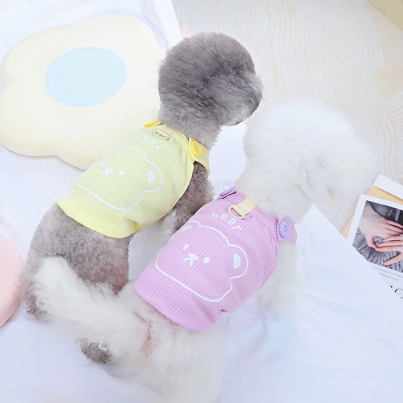Primavera Verano oso impreso cachorro chaleco para perros pequeños gatos camiseta fina transpirable sin mangas Chihuahua Pug pulóver suministros para mascotas