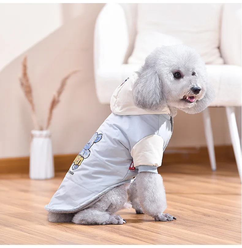 Chaleco de felpa de oso feliz para mascotas, abrigo de dos piernas, ropa de oso Schnauzer de peluche de dibujos animados, ropa para cachorros, chaqueta para perros pequeños, Otoño/Invierno