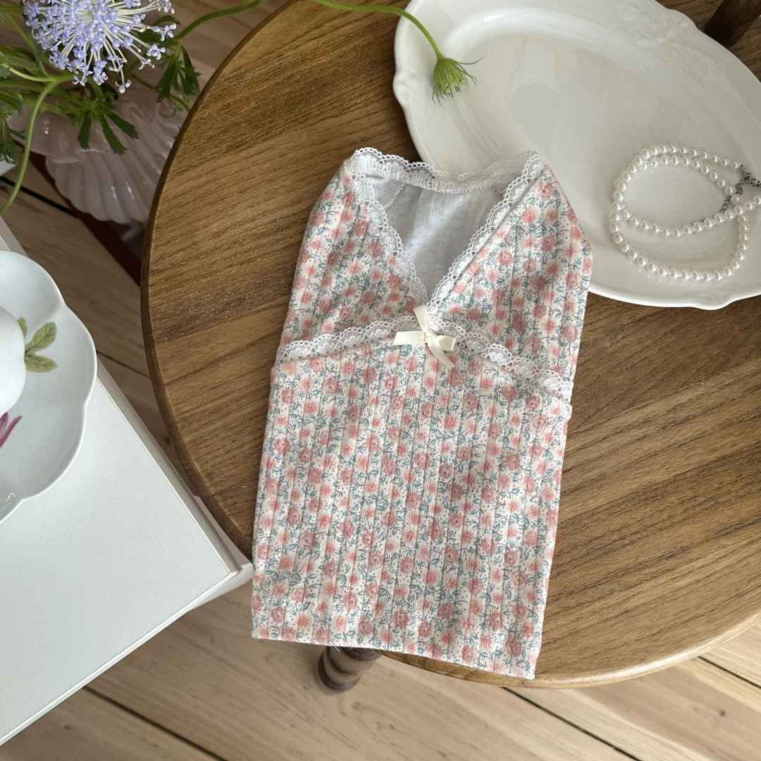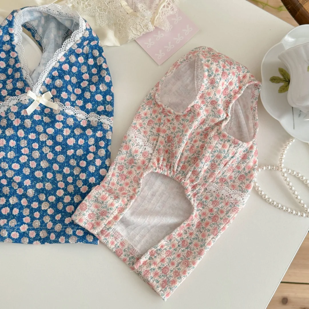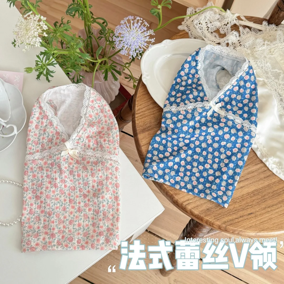 Chaleco Floral de encaje con cuello en V para mascotas, pijamas para perros pequeños y gatos, ropa para el hogar para primavera y otoño, ropa para cachorros pequeños