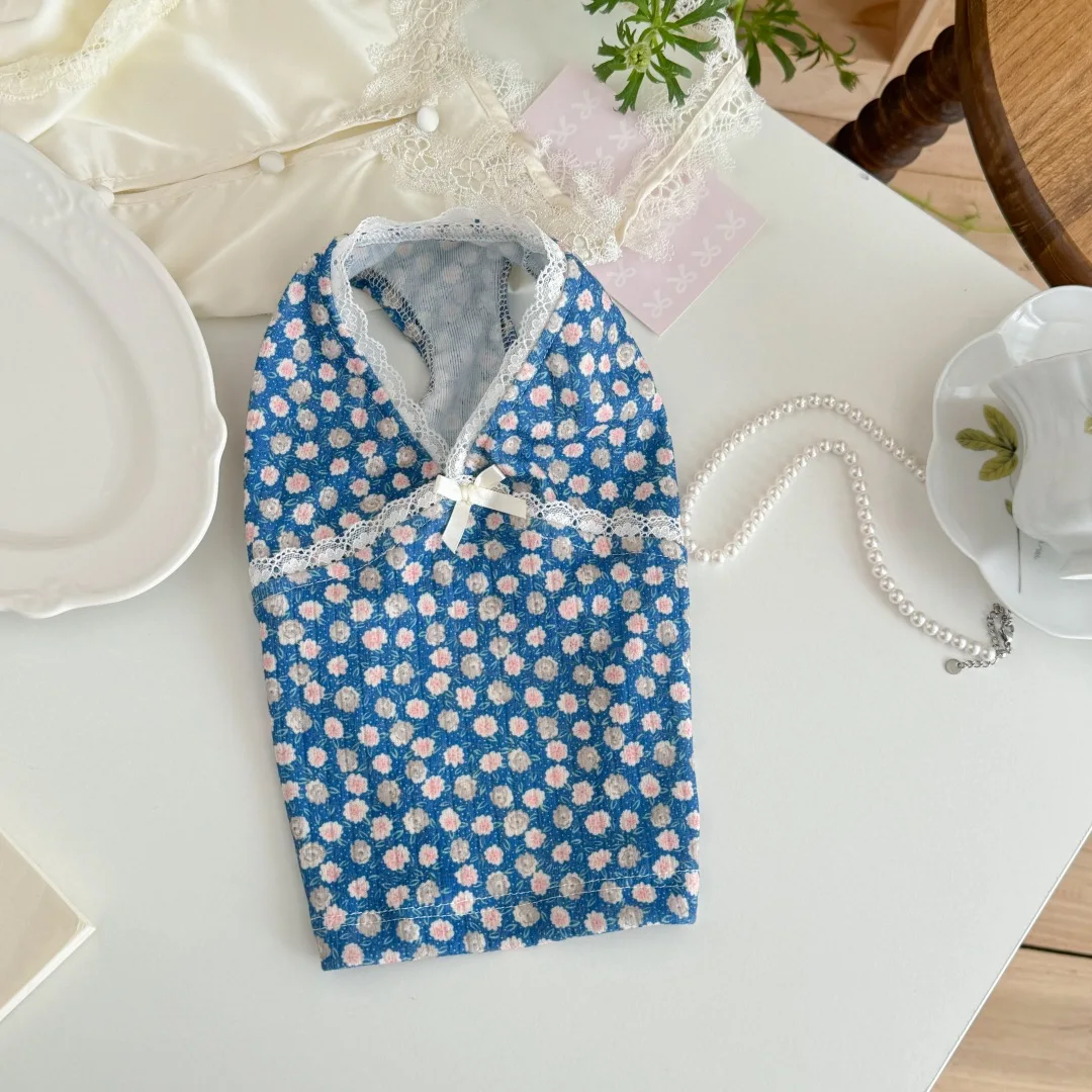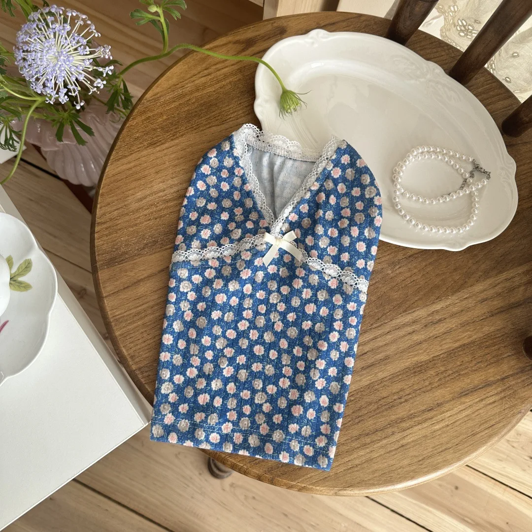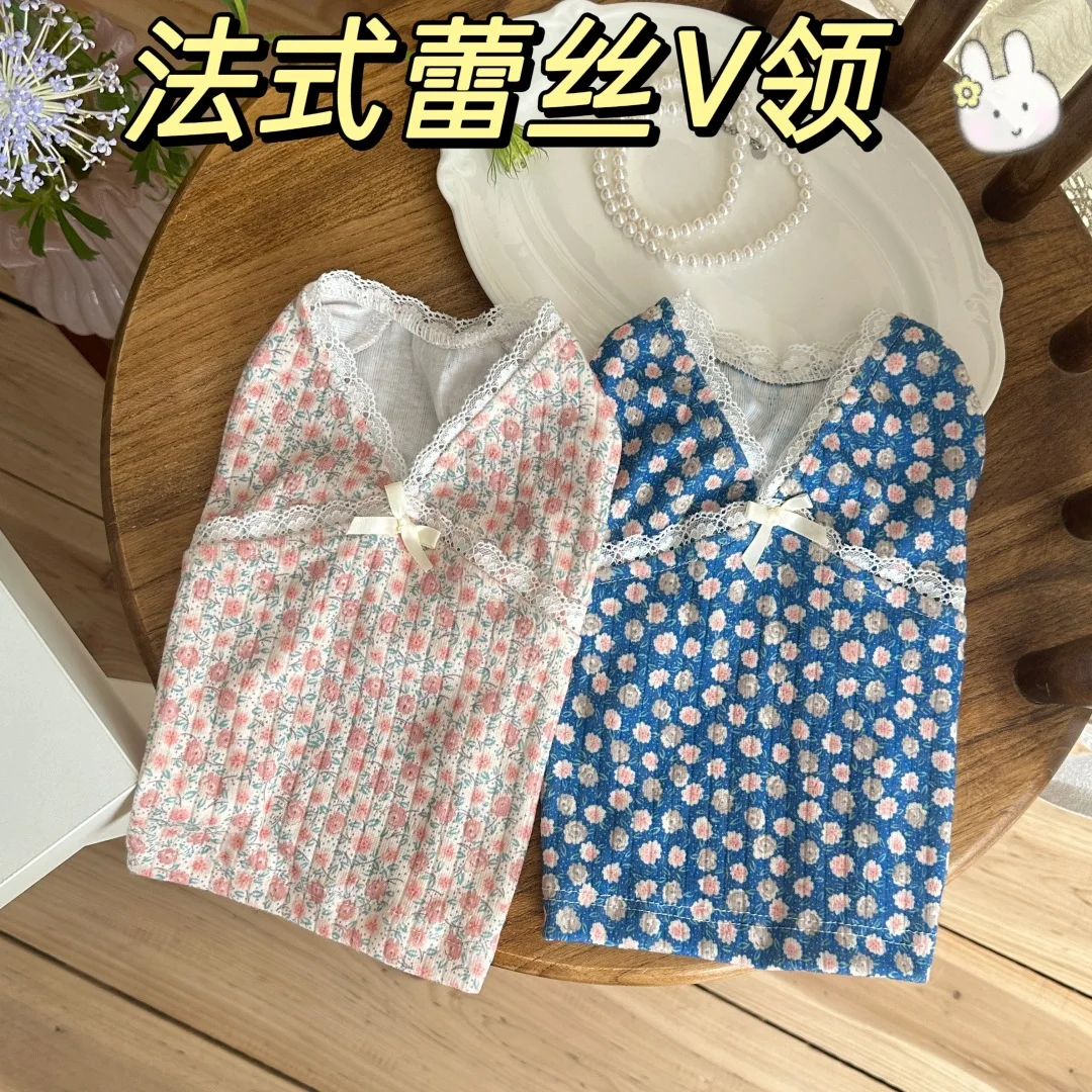 Chaleco Floral de encaje con cuello en V para mascotas, pijamas para perros pequeños y gatos, ropa para el hogar para primavera y otoño, ropa para cachorros pequeños