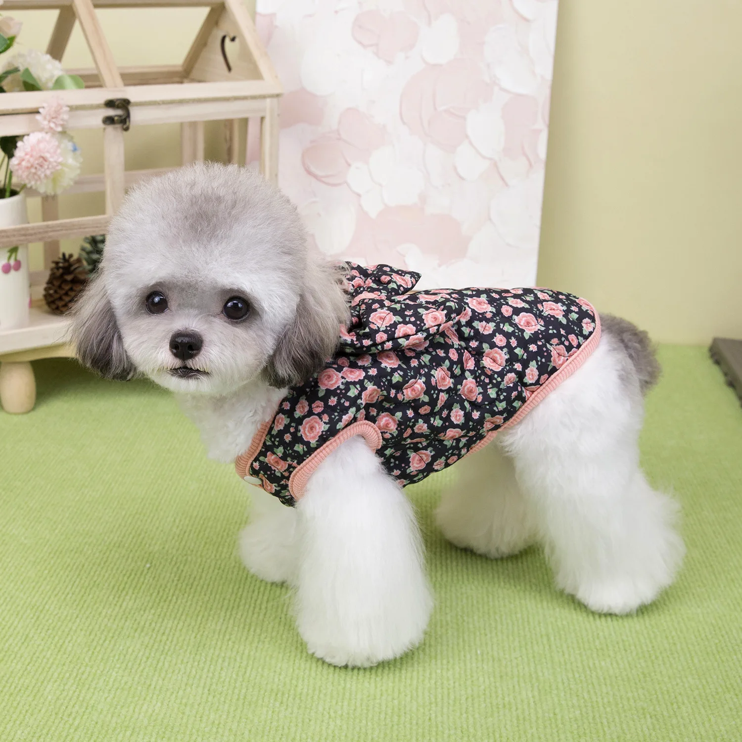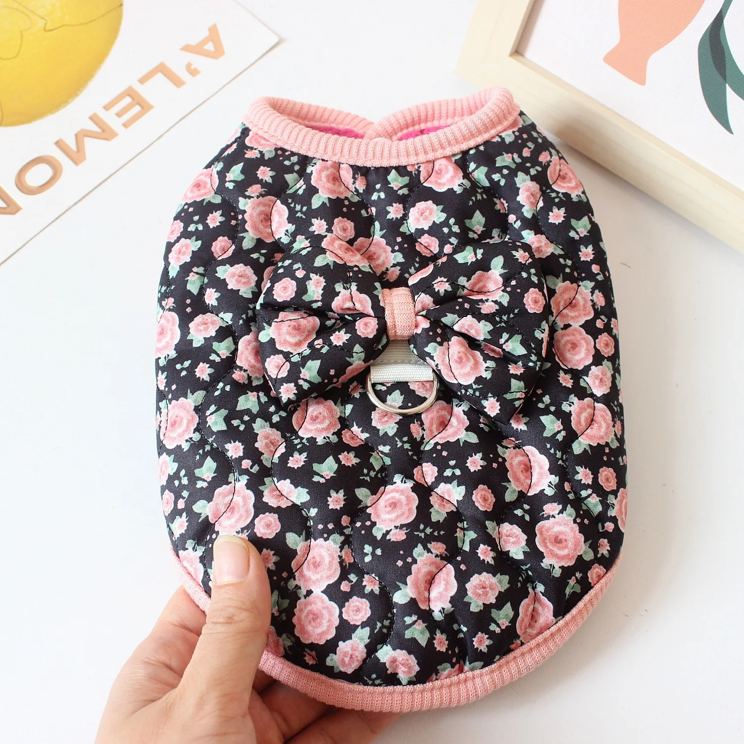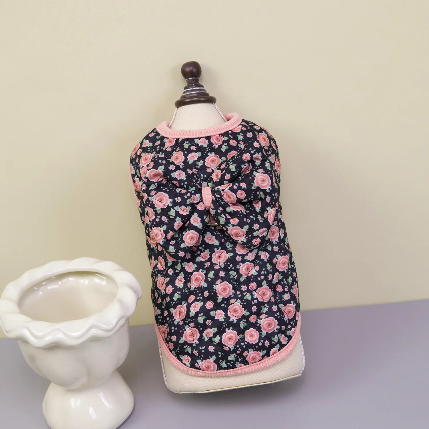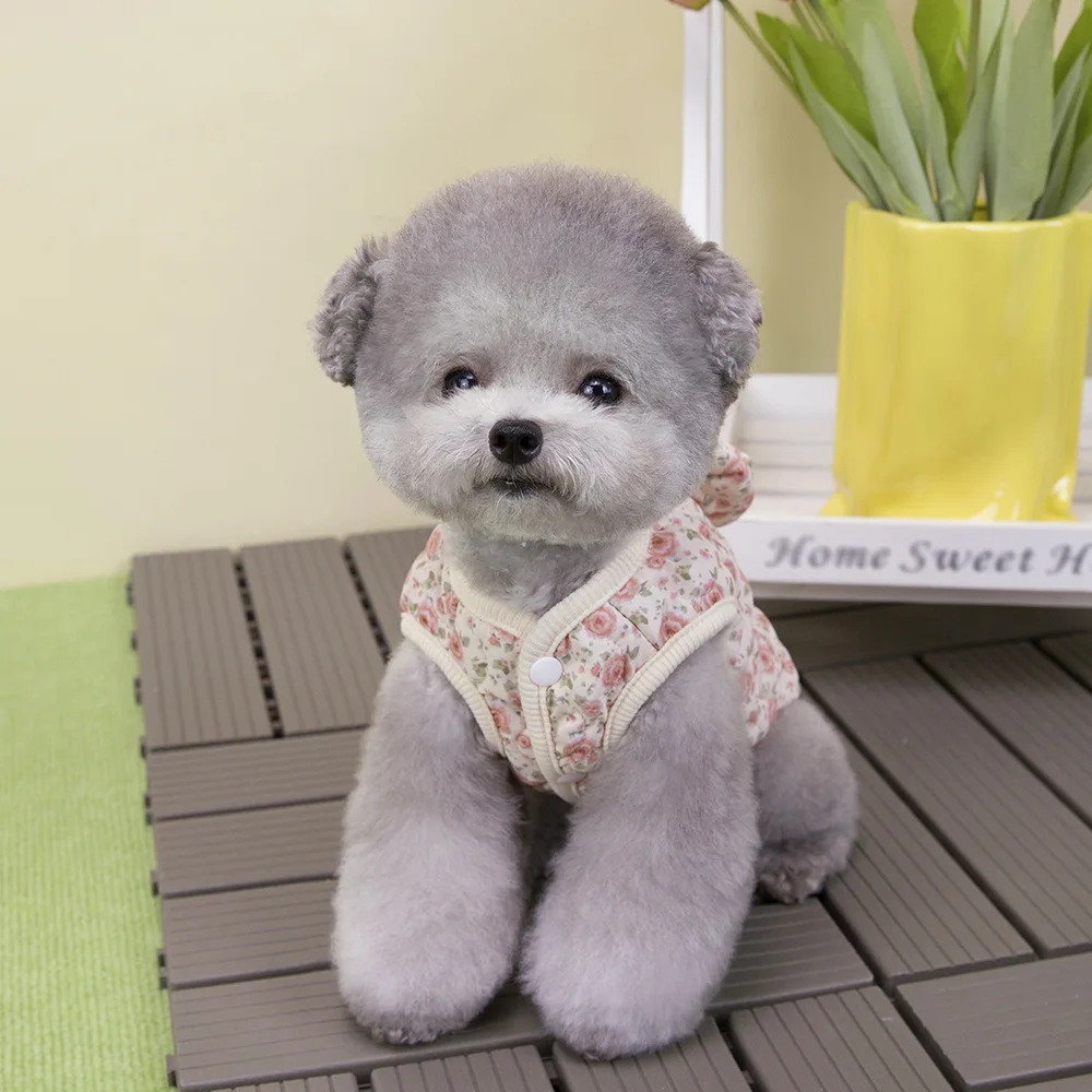 Chaleco Floral de invierno para mascotas, abrigo cálido con lazo para perros pequeños y gatos, camiseta sin mangas para otoño/invierno, ropa para perros pequeños, ropa para cachorros