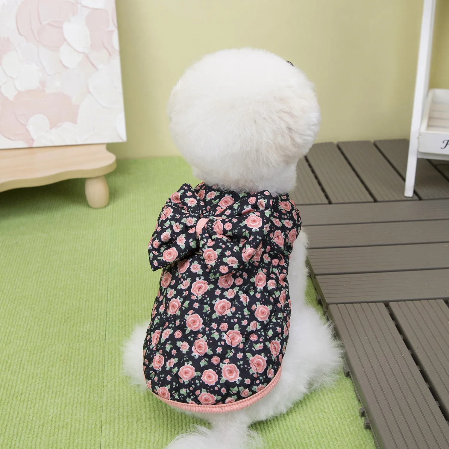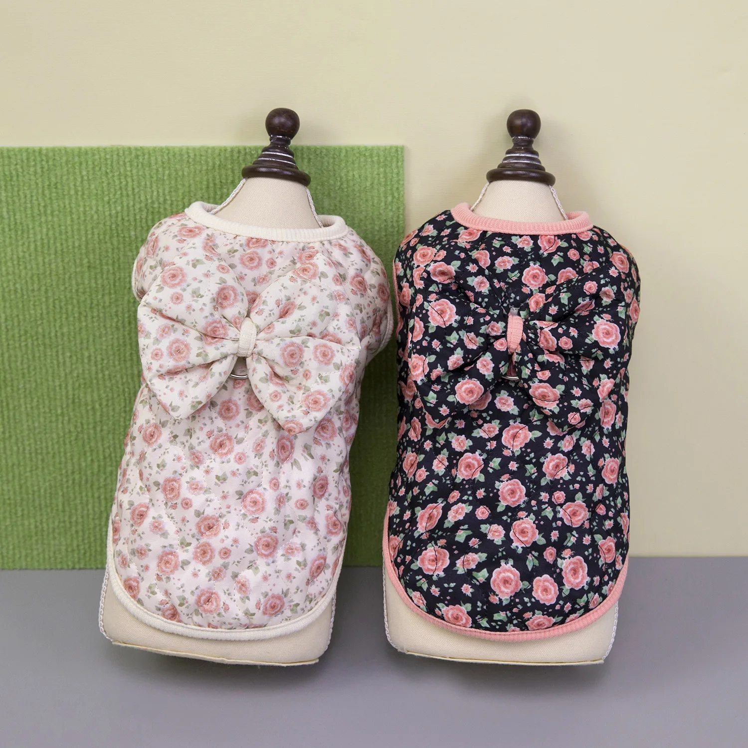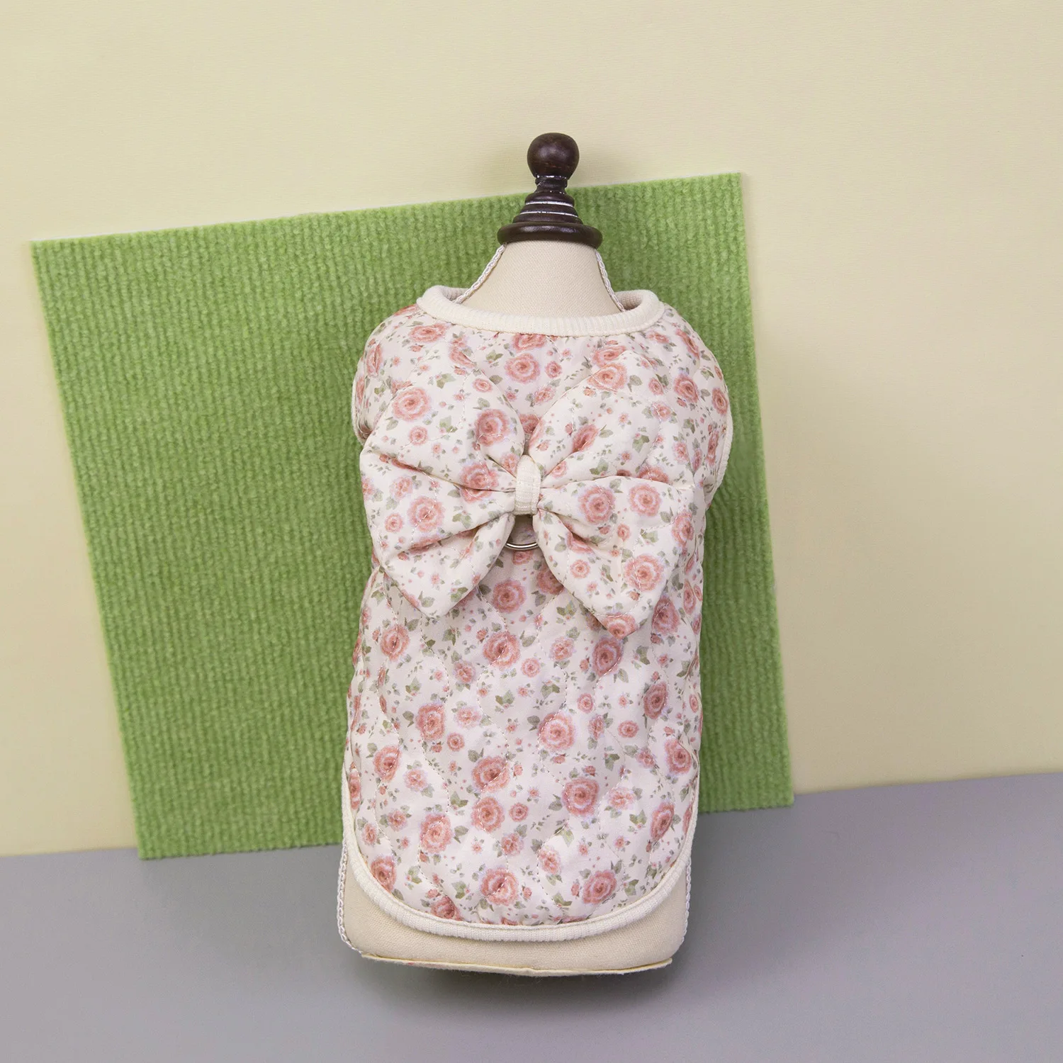 Chaleco Floral de invierno para mascotas, abrigo cálido con lazo para perros pequeños y gatos, camiseta sin mangas para otoño/invierno, ropa para perros pequeños, ropa para cachorros
