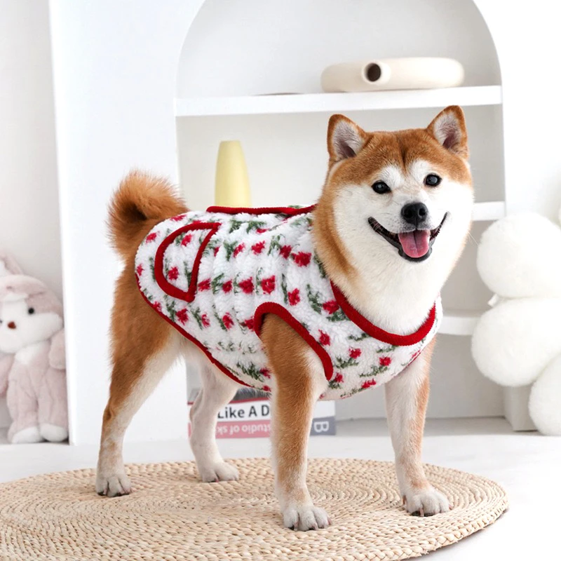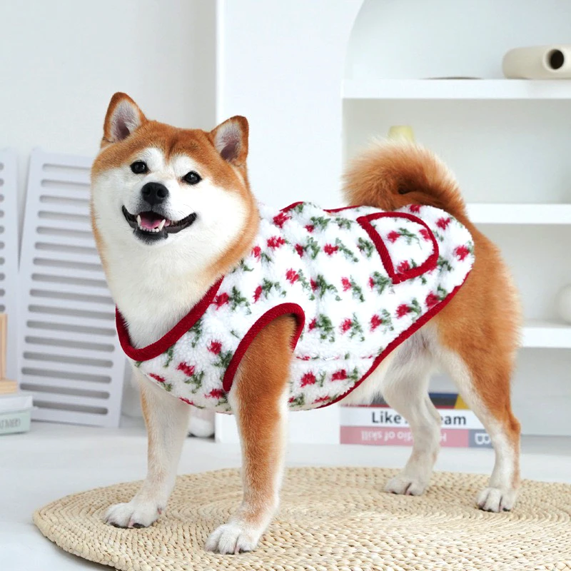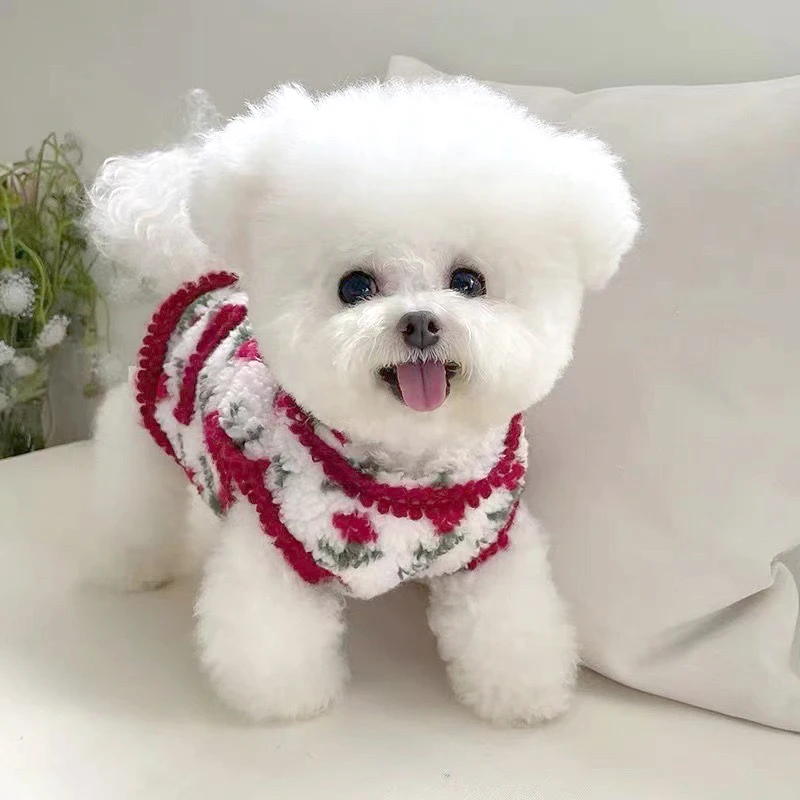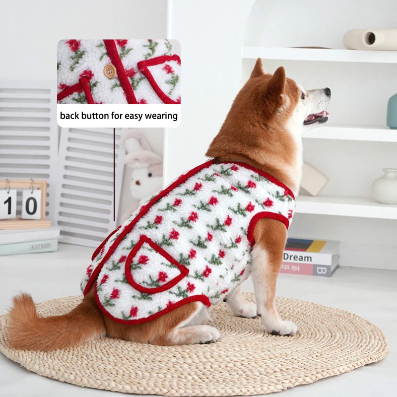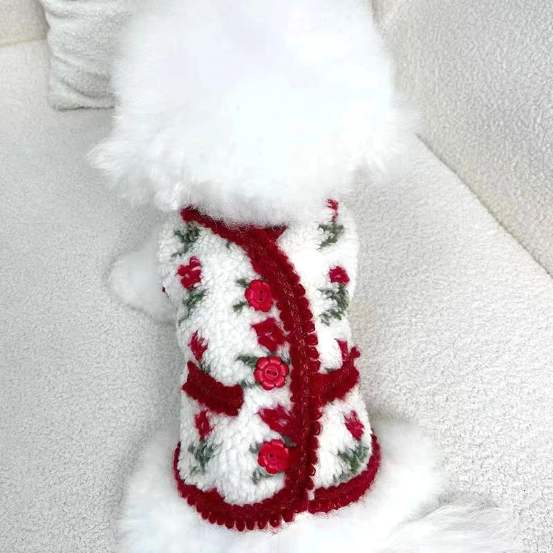 Chaleco Floral rosa de invierno para mascotas, ropa romántica de princesa para perros pequeños y medianos, sudadera para Chihuahua de Año Nuevo, monos para cachorros