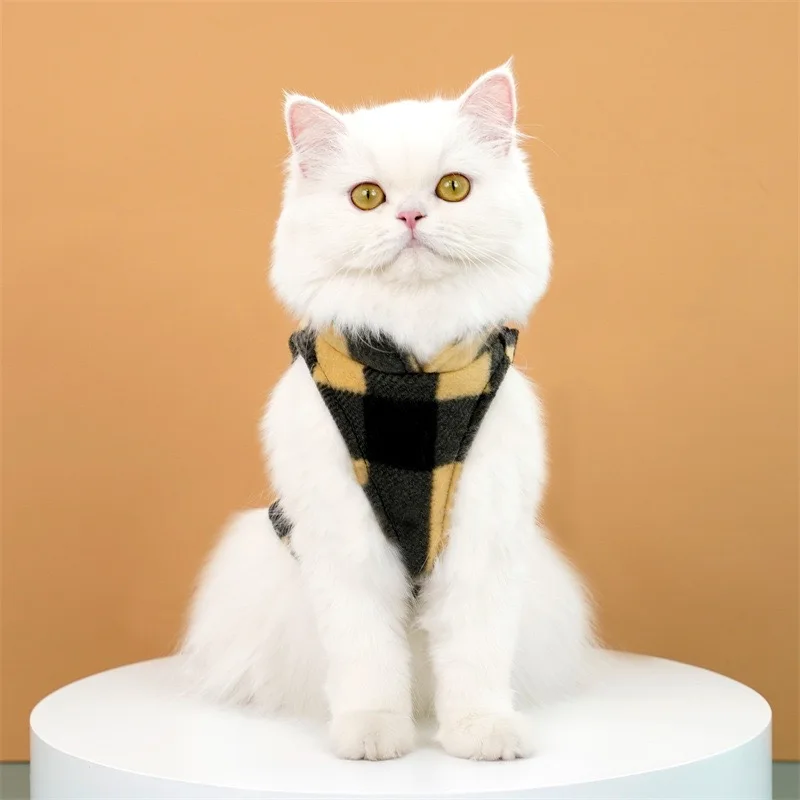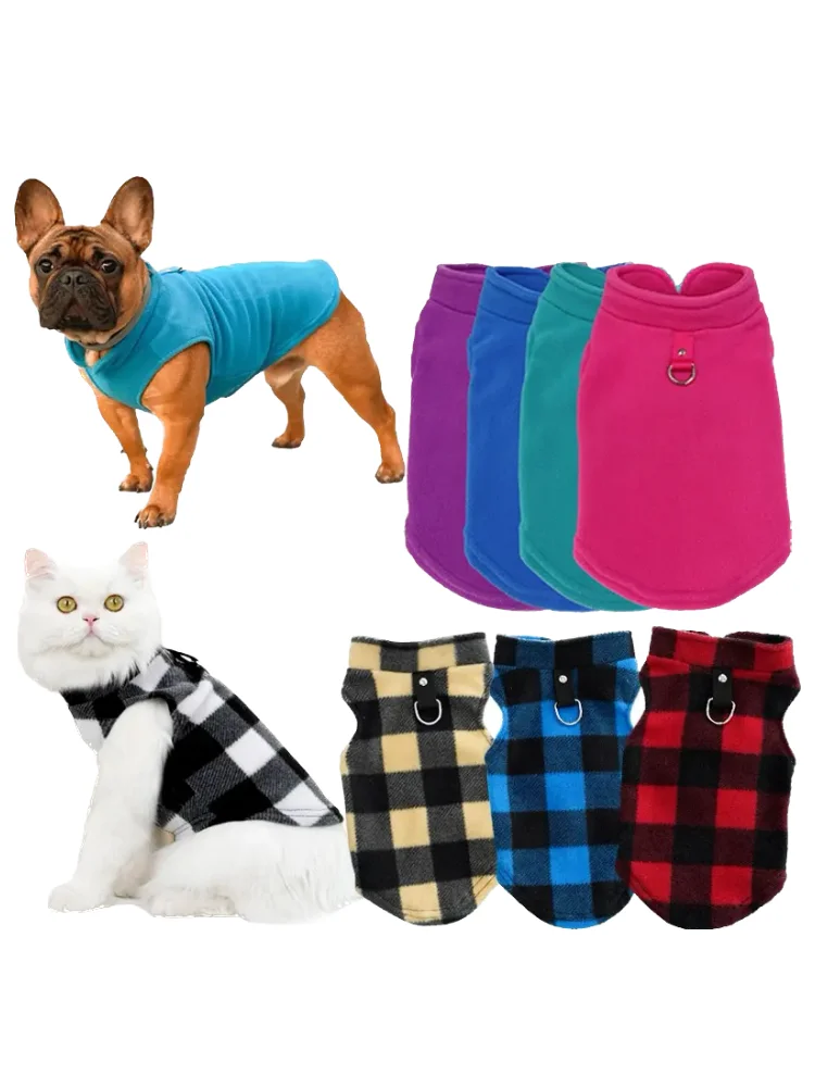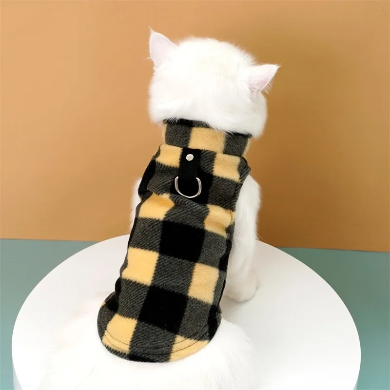 Chaleco grueso a cuadros Vintage para mascotas, abrigo cálido de lana para perros y gatos, traje pequeño y mediano, anillo de tracción, Primavera, Otoño e Invierno