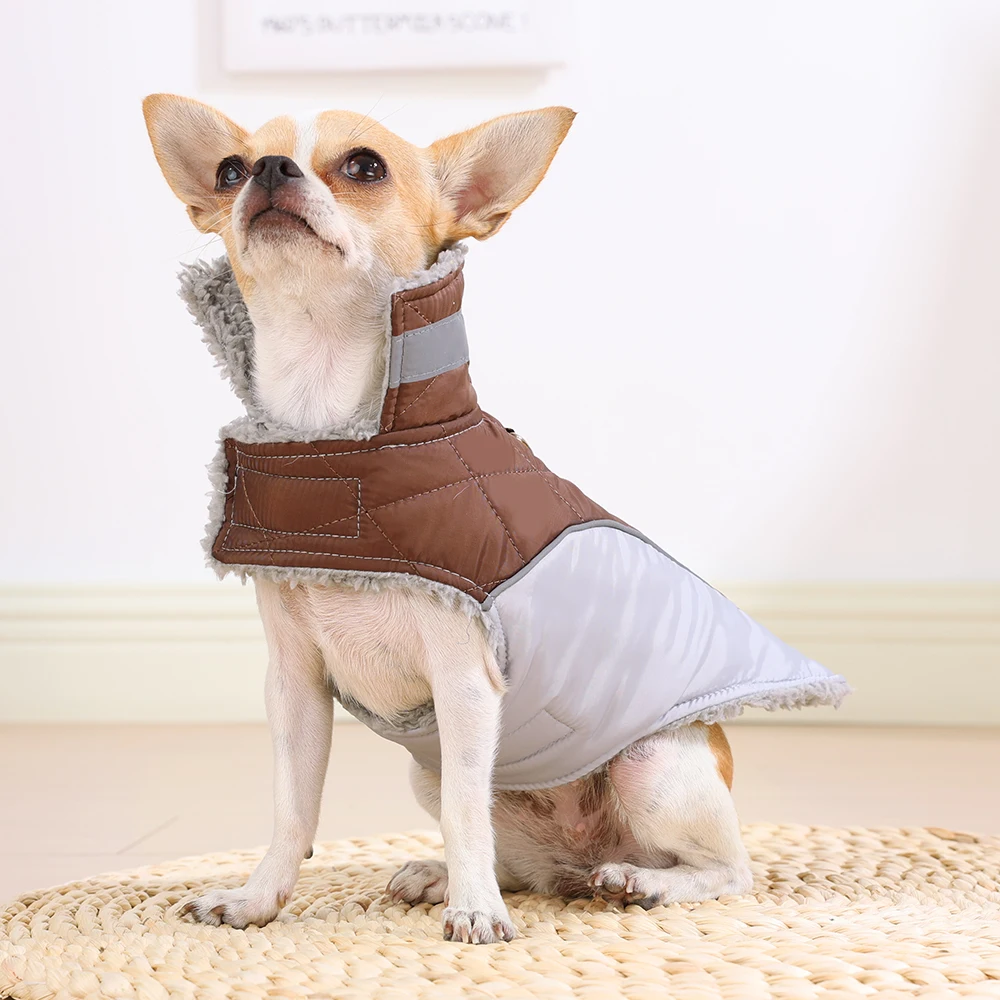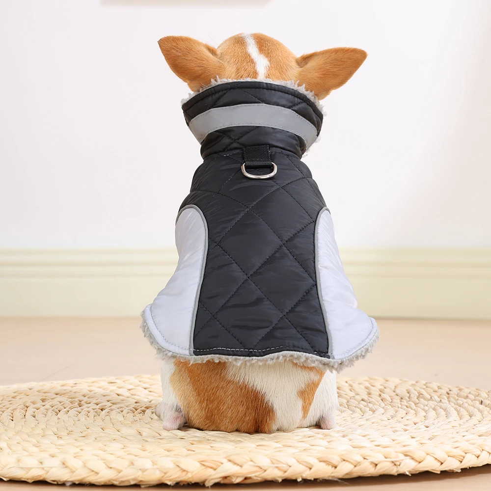 Producto: ropa gruesa para perros, abrigo reflectante para mascotas, trajes cálidos de lana para mascotas, chaqueta impermeable para cachorros