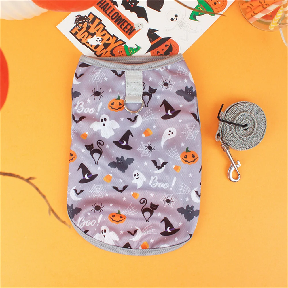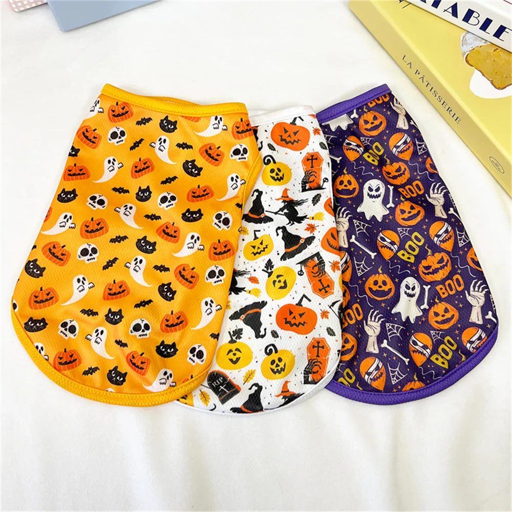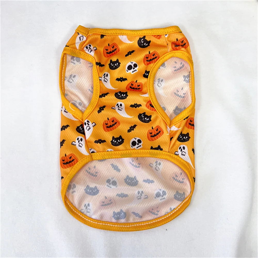 Chaleco de Halloween para cachorros, gatos, perros, calabaza, estampado de fantasma, ropa para mascotas para perros pequeños, chalecos de Pomerania Chiahuahua, ropa para mascotas, camisa