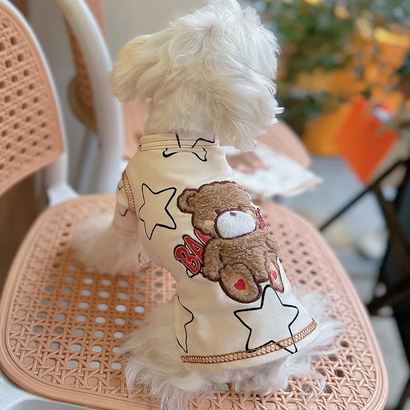 Chaleco para el hogar con bordado de oso para mascotas, pijama Universal para perros y gatos con tracción, ropa para cachorros, primavera y otoño