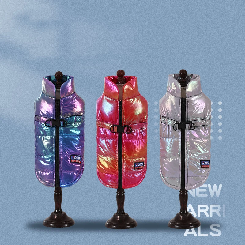 Chaleco impermeable reflectante de color degradado con forro polar, ropa cálida para perros Bichon con diseño reflectante.