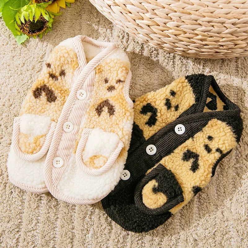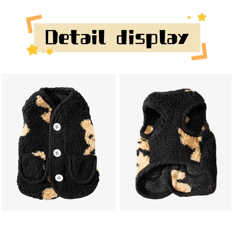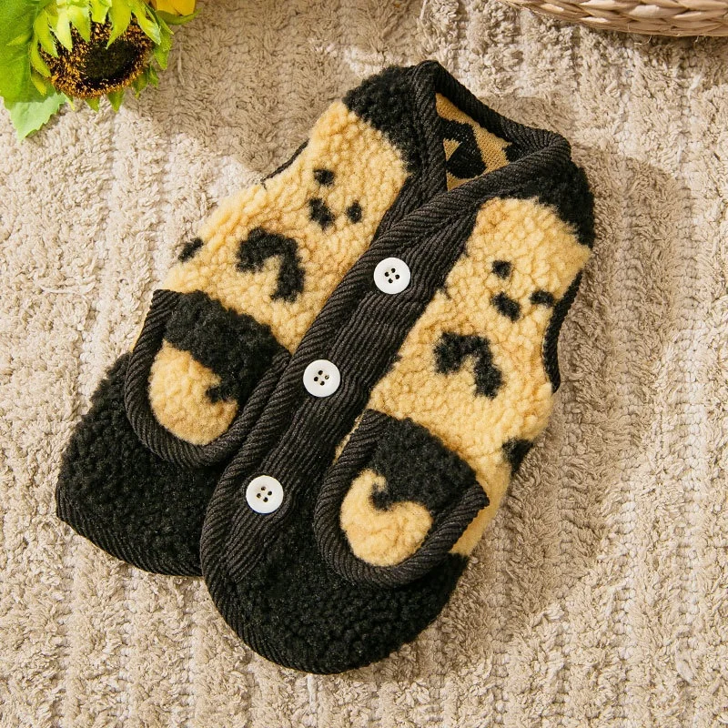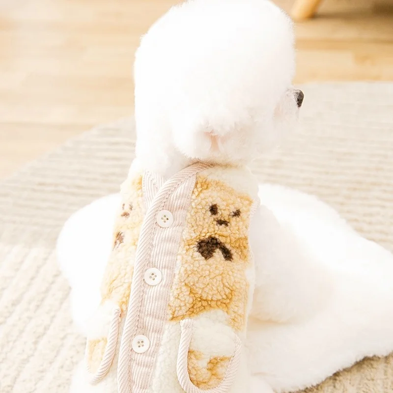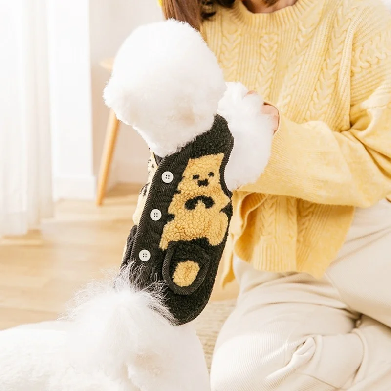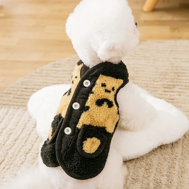 Chaleco de invierno para perros, chaqueta para perros pequeños, ropa con estampado de oso para perros, chaqueta suave y cálida para cachorros, abrigo, cárdigan para gatos a la moda, chaleco, suministros para mascotas
