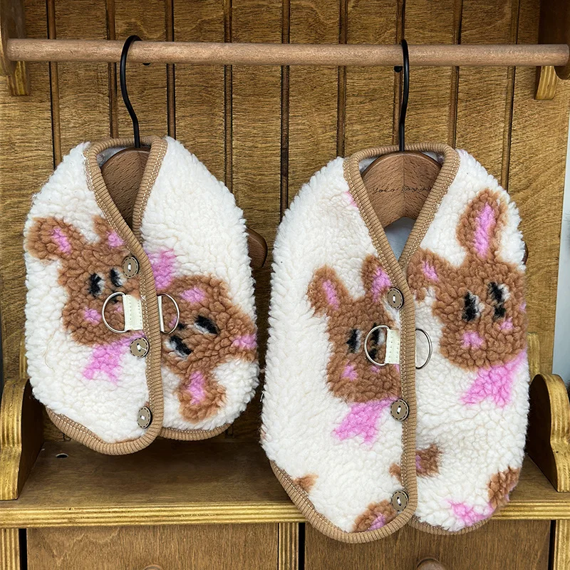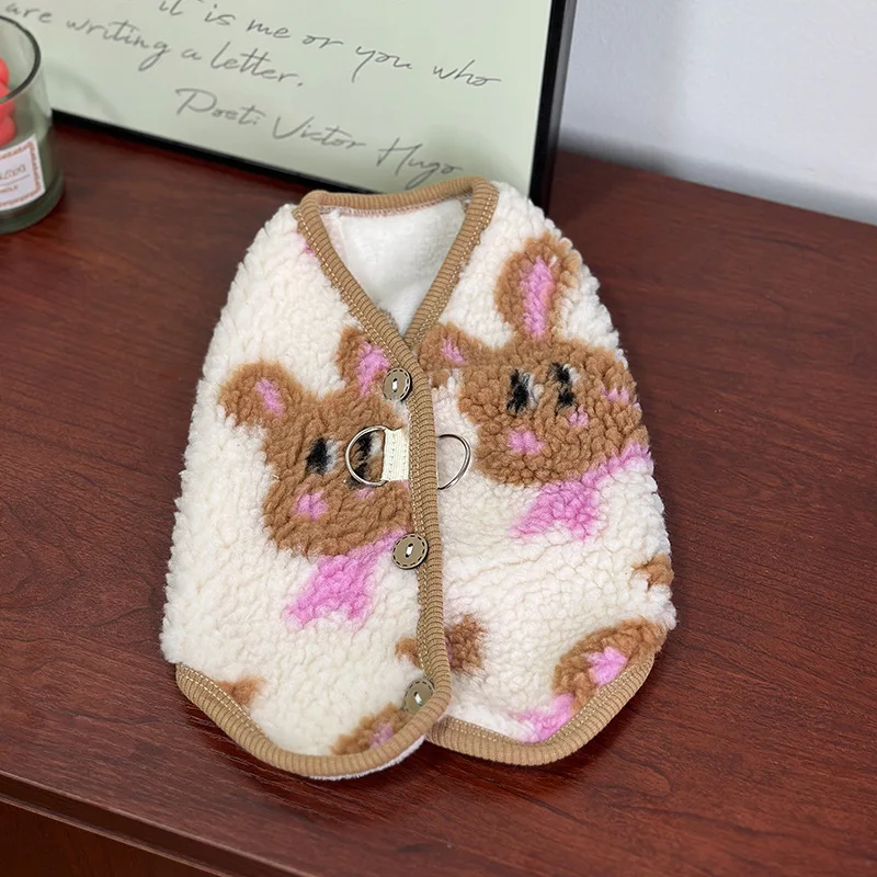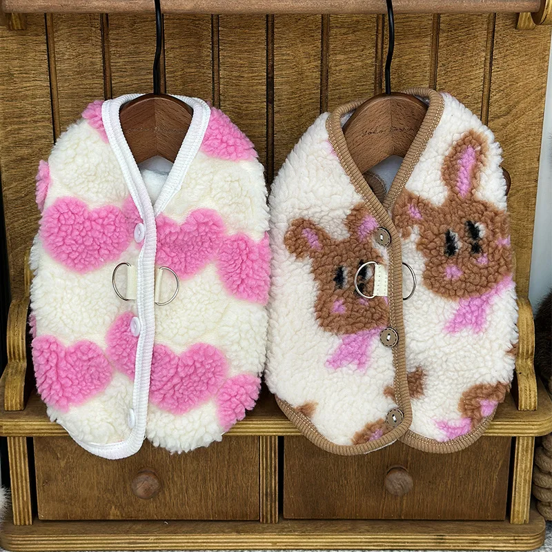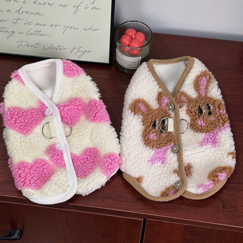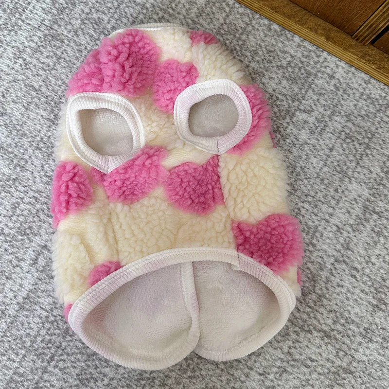 Chaleco de lana de cordero para mascotas, cárdigan de conejo de amor, chaleco con tracción de lana gruesa, ropa para gatos pequeños, ropa para cachorros y perros pequeños