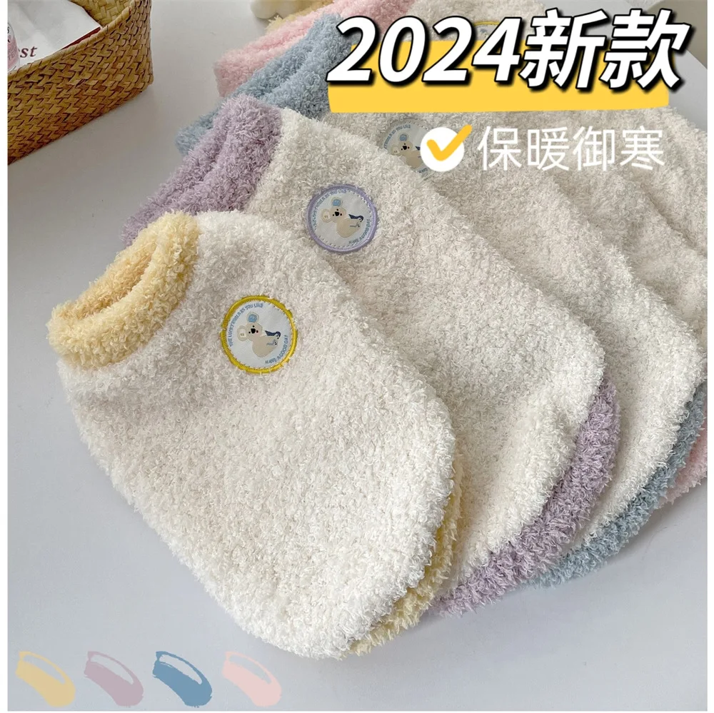 Chaleco de lana de cordero para otoño e invierno, Sudadera con capucha con cuello de color para mascotas, Jersey cálido para invierno, ropa para perros pequeños, ropa de terciopelo para el hogar