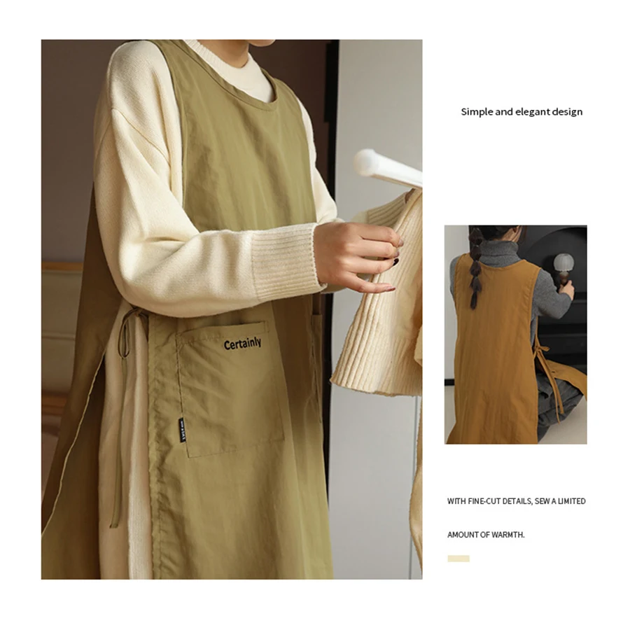 Fue difícil elegir un delantal porque tengo un cuerpo grande, pero es resistente al agua para uso diario y es suficiente para el trabajo. El área del pecho es amplia, lo que lo hace resistente a la contaminación. La longitud total también es adecuada, y parece una buena opción. El mejor que compré recientemente.