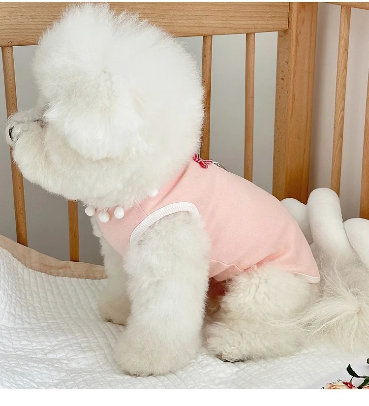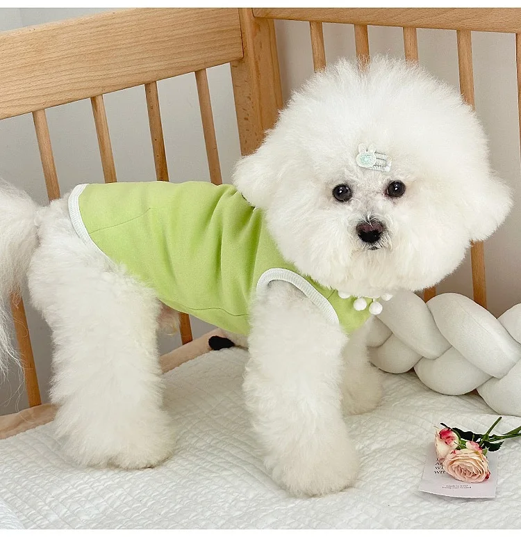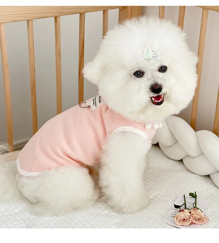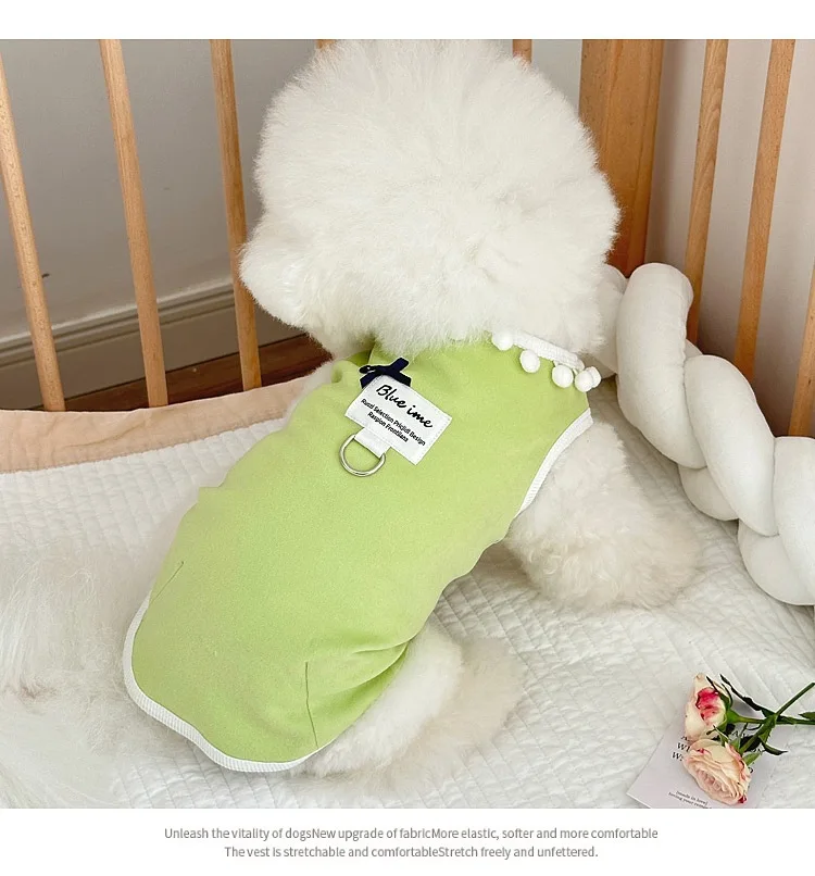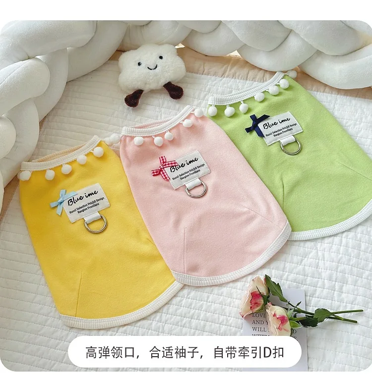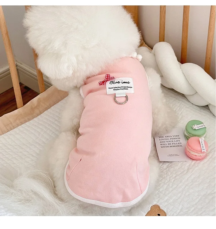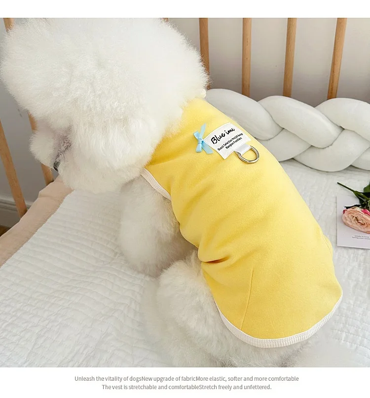 Chaleco con lazo a cuadros para mascotas, vestido de Color contrastante, prendas de vestir exteriores para las cuatro estaciones, camisa inferior, ropa para cachorros pequeños, primavera