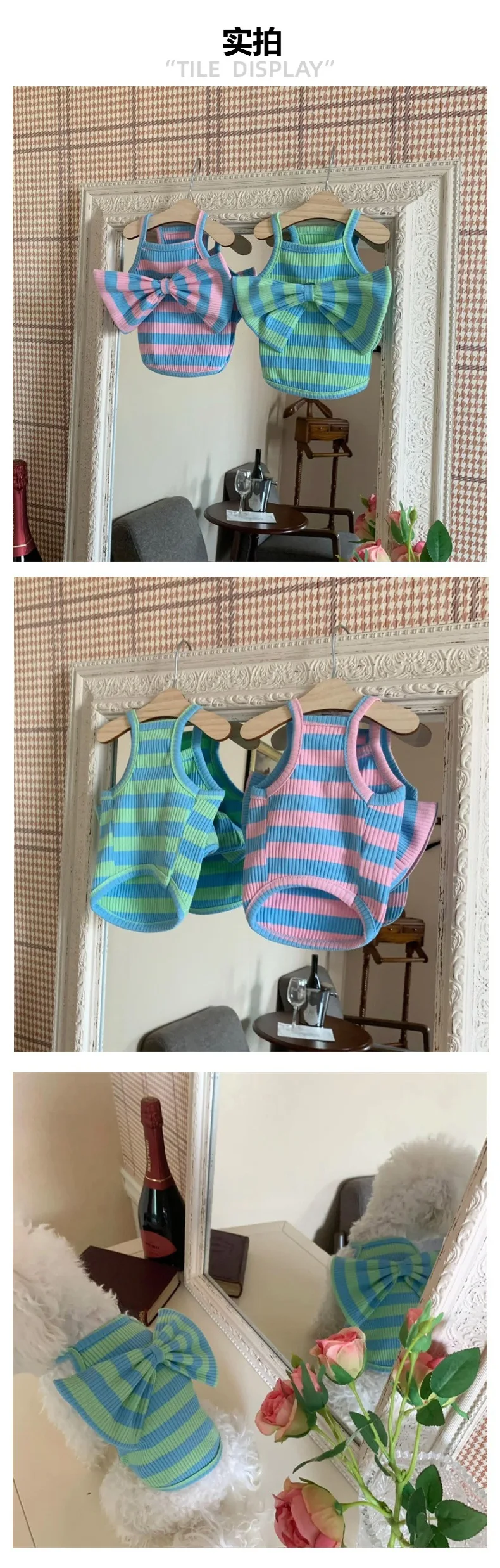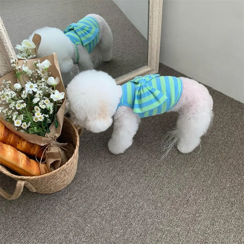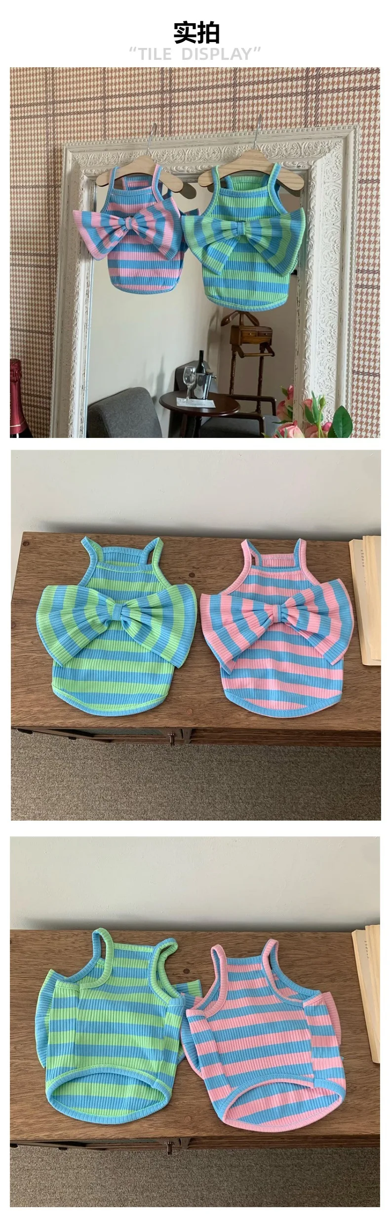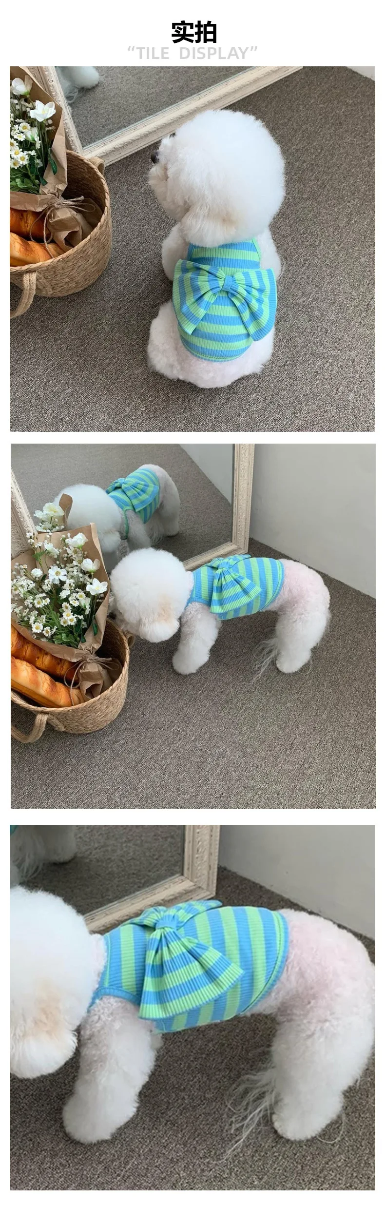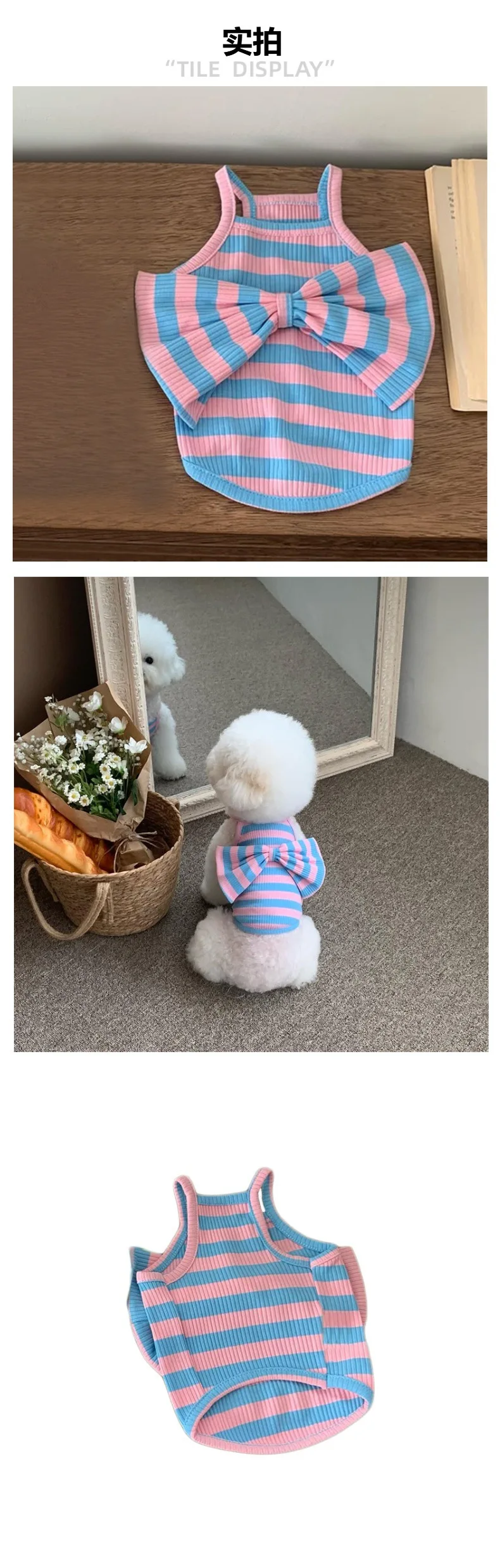 Chaleco con lazo a rayas para mascotas, Camiseta corta elástica con agradable arco, Teddy Schnauzer, ropa para cachorros con correa para perros pequeños