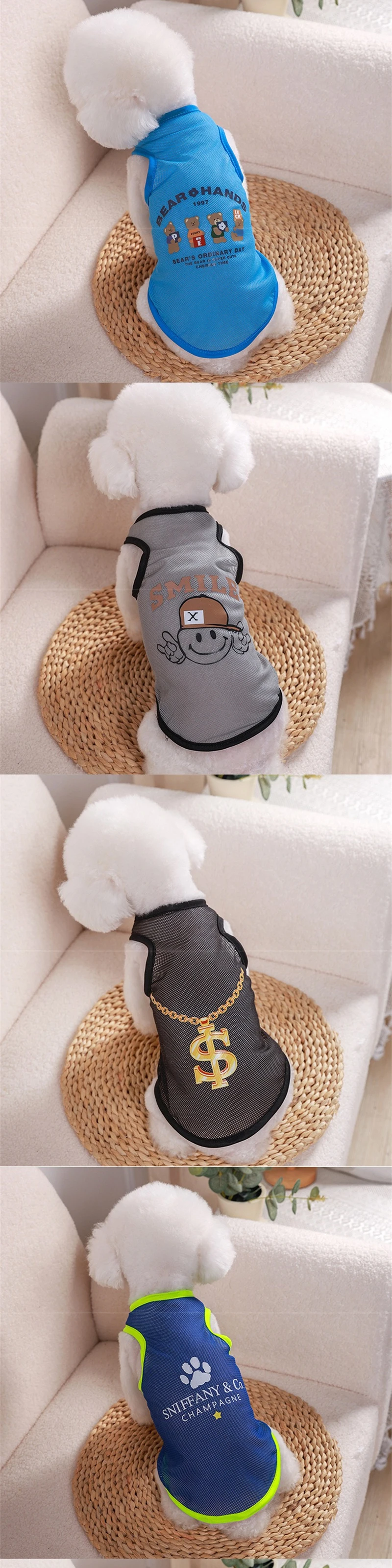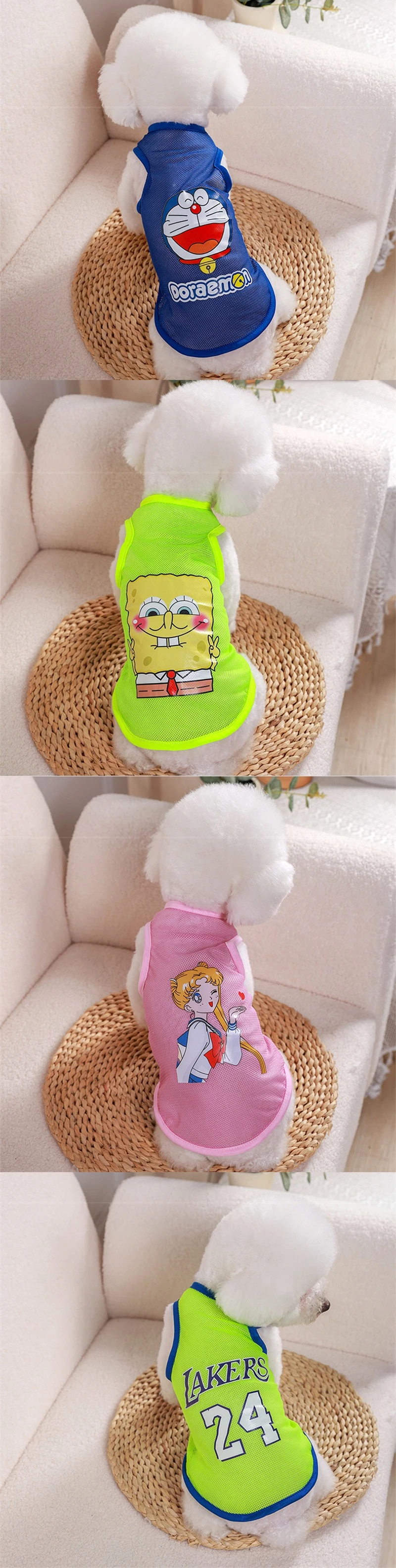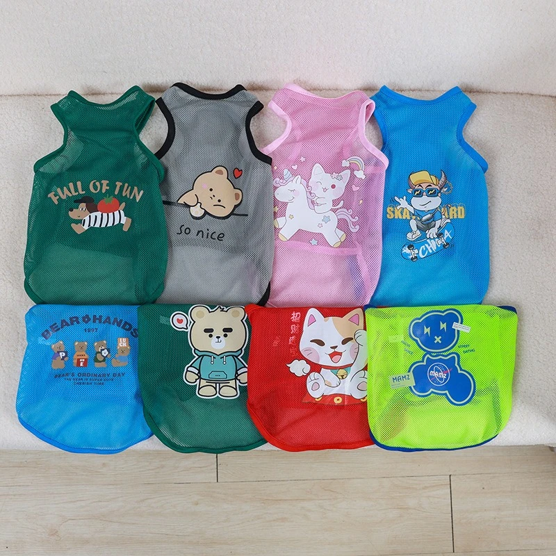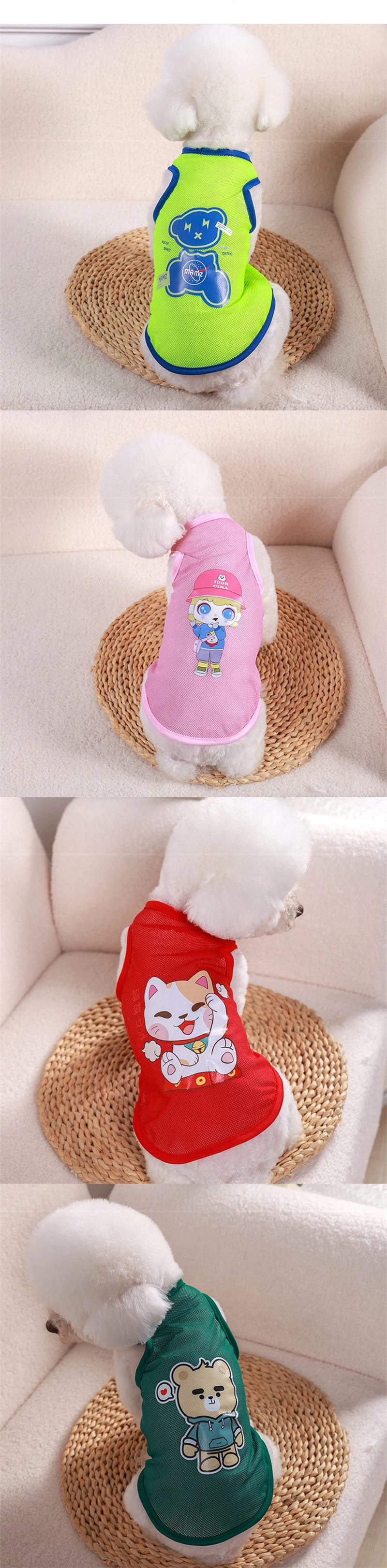 Chaleco de malla de dibujos animados para perros pequeños y medianos, monos de verano transpirables Unisex para Gato, protector solar para exteriores, monos para gato Bulldog Francés