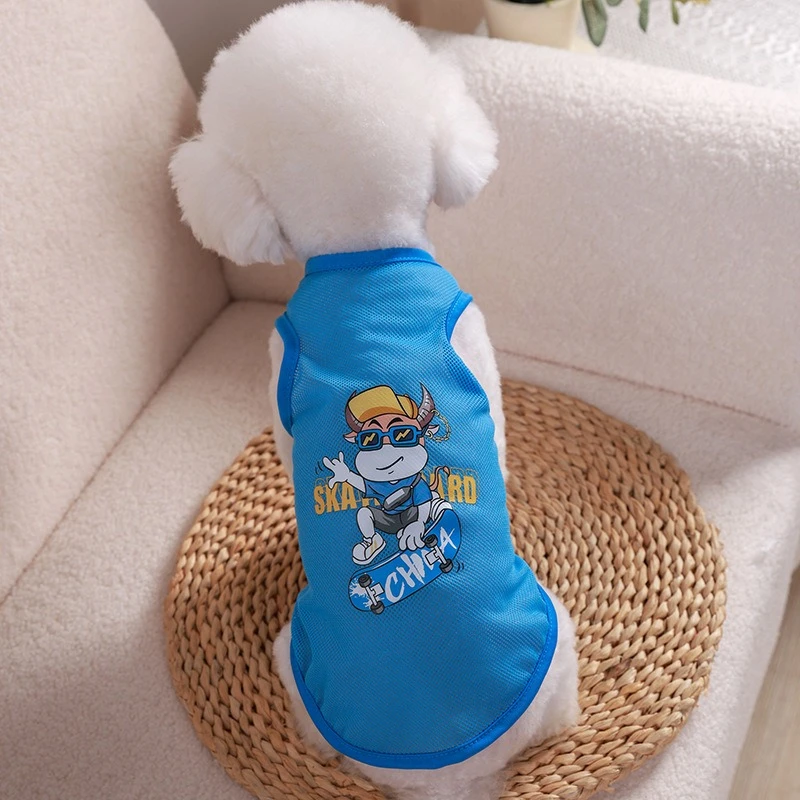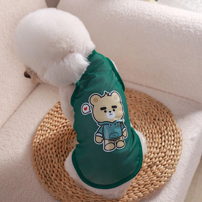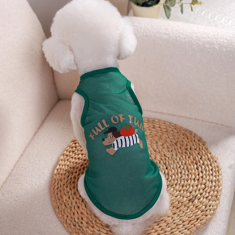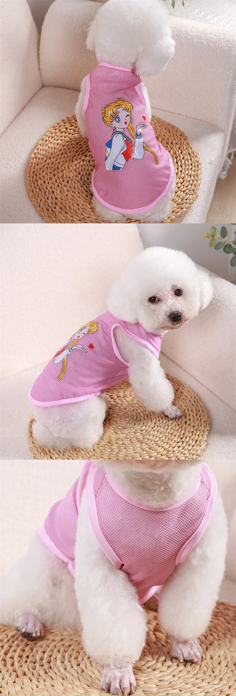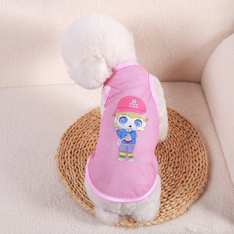 Chaleco de malla de dibujos animados para perros pequeños y medianos, monos de verano transpirables Unisex para Gato, protector solar para exteriores, monos para gato Bulldog Francés