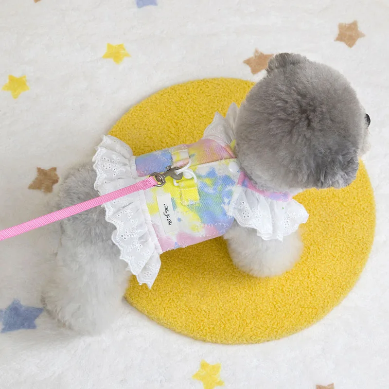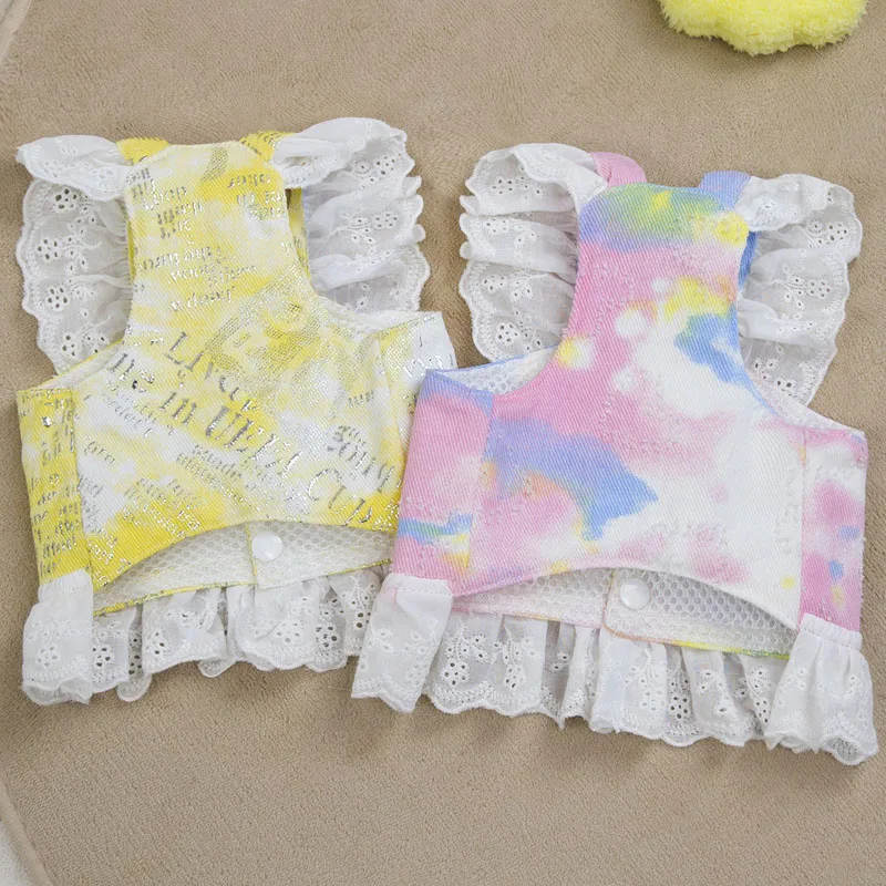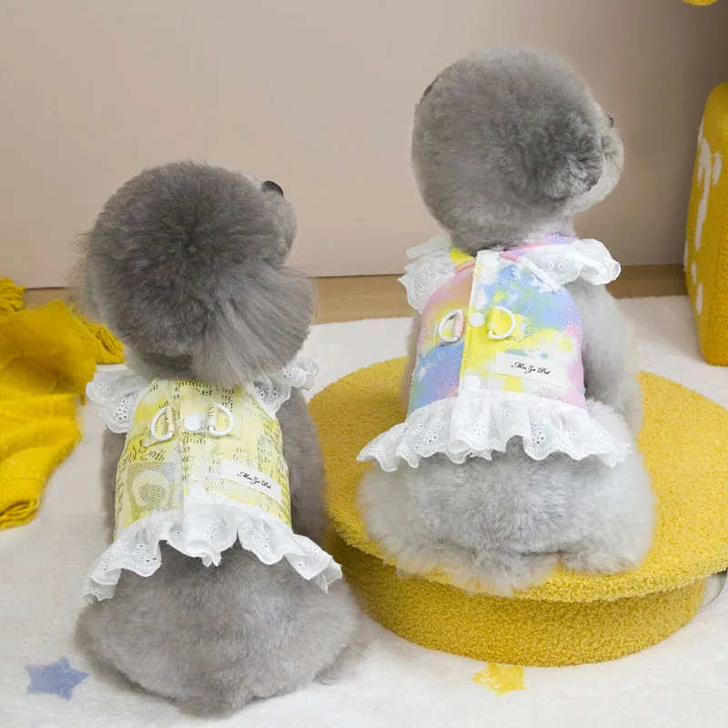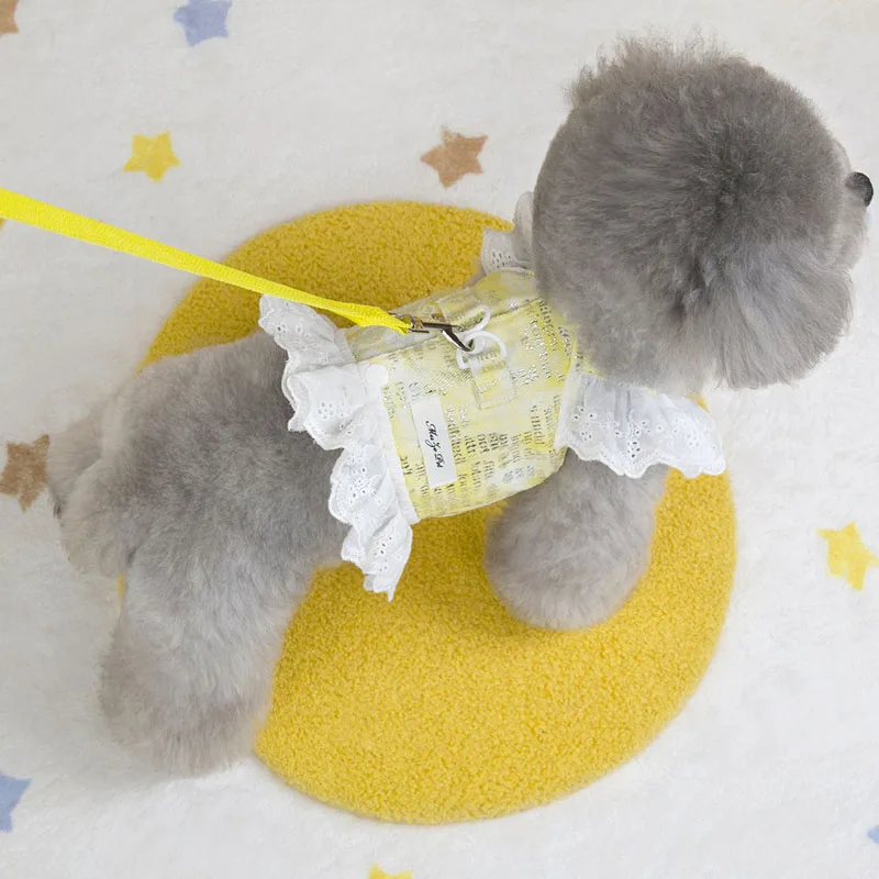 Chaleco de malla para perros y gatos, arnés para niñas, accesorios para mascotas, vestido de manga de encaje, correa de pecho rosa y amarilla para perros pequeños, arnés para cachorros chihuahua