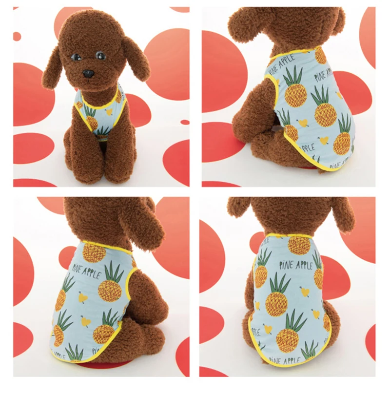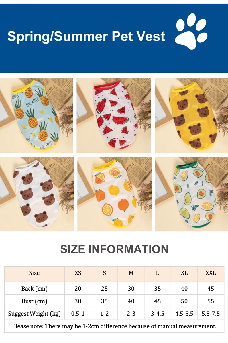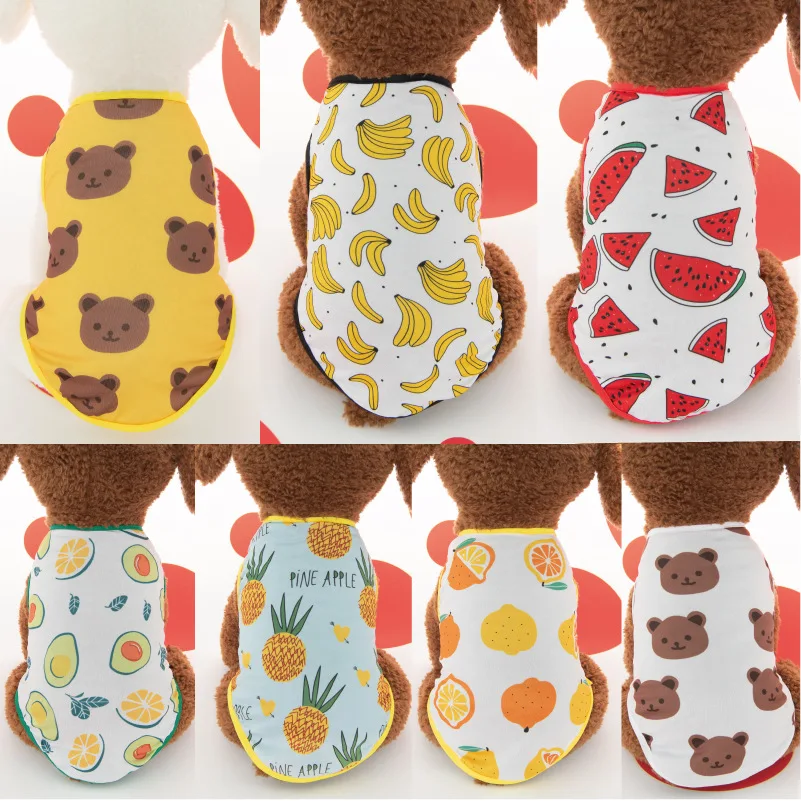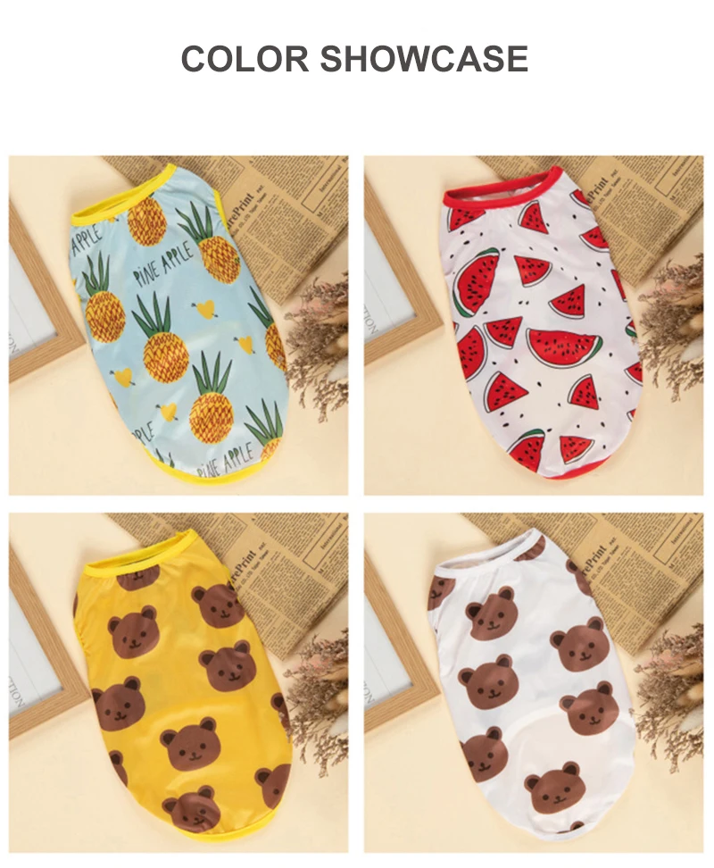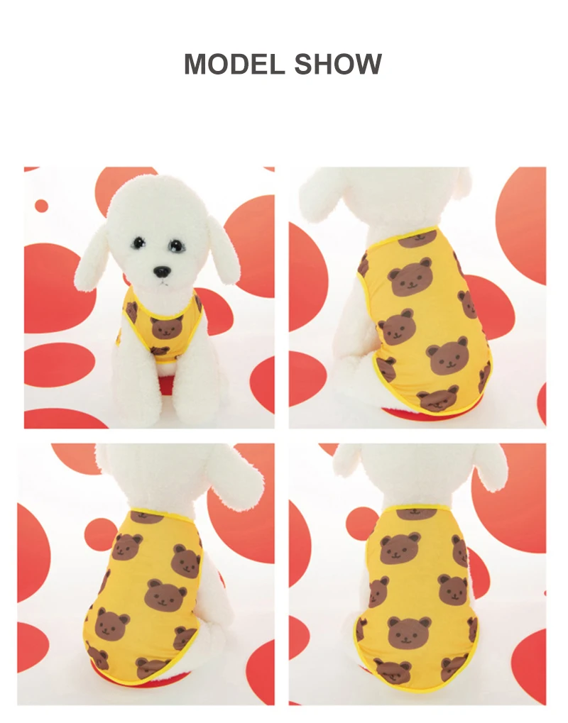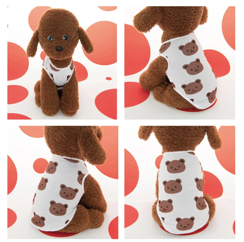 Chaleco de malla transpirable para perros pequeños, ropa elástica con estampado de dibujos animados, Color caramelo, para primavera y verano, venta al por mayor