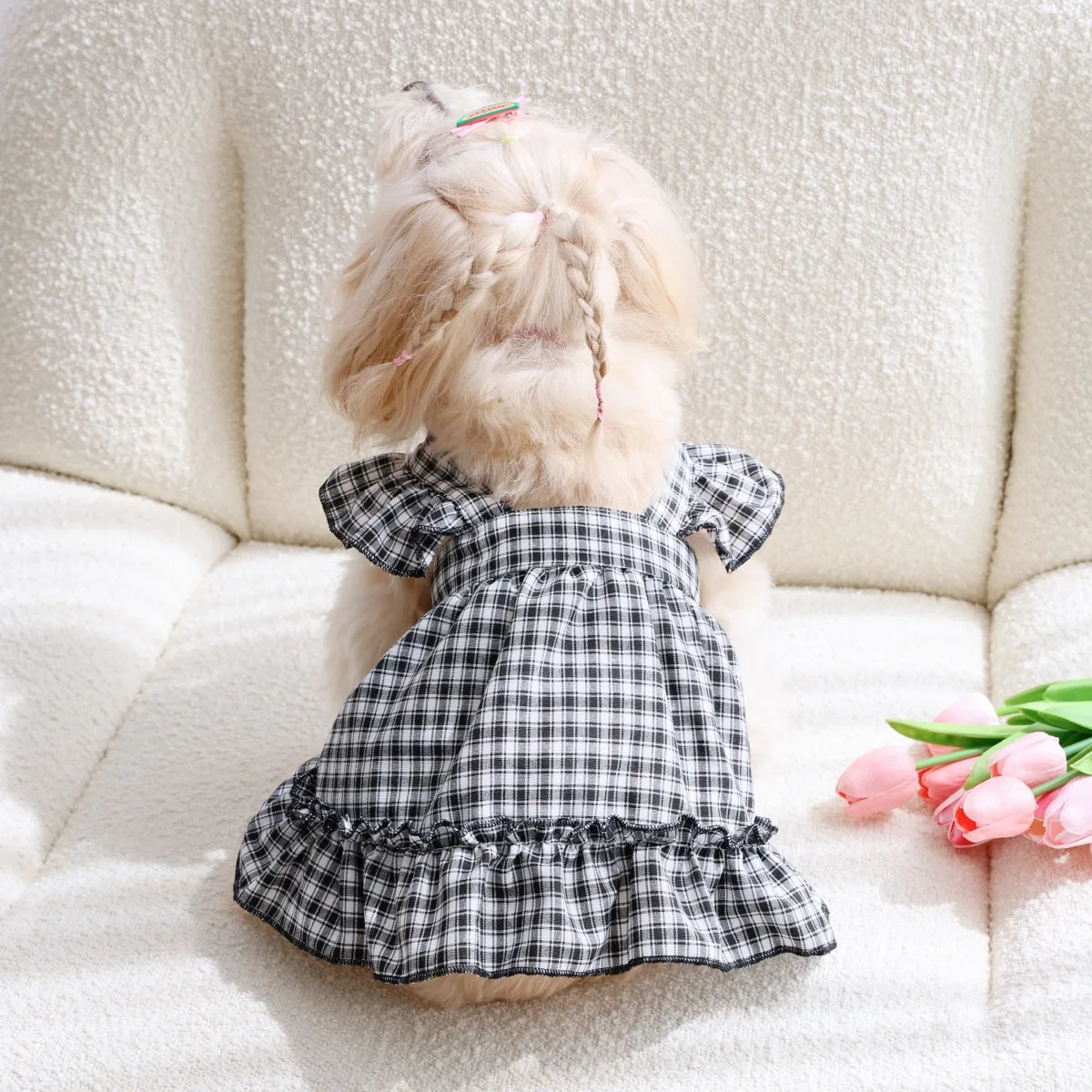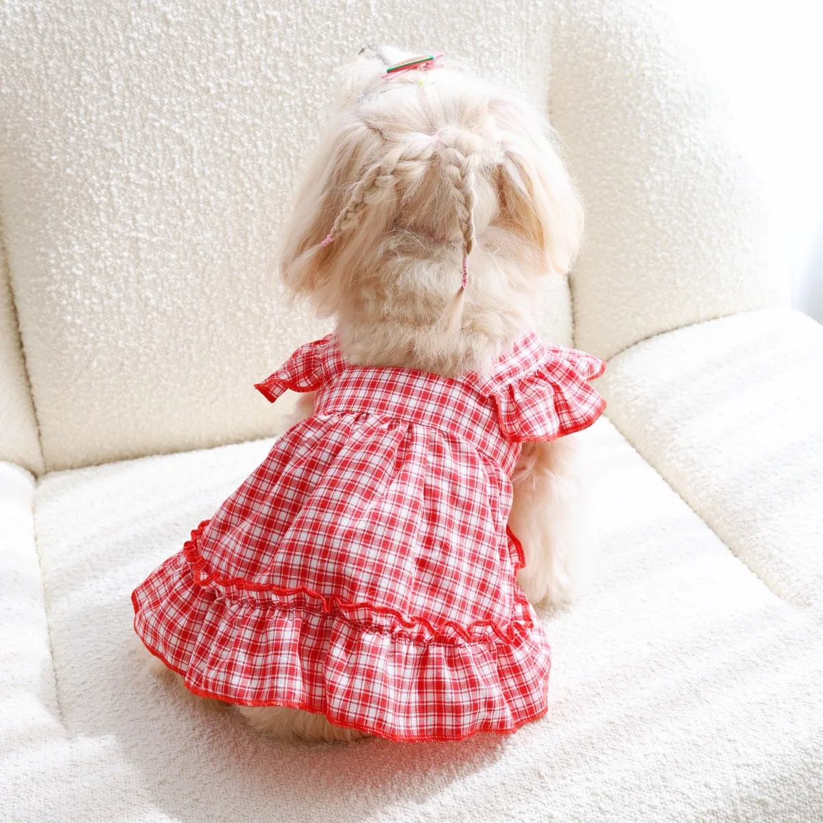 Chaleco de manga voladora a cuadros para mascotas, falda a cuadros roja bonita, ropa adecuada para cachorros de verano, ropa para perros pequeños, primavera y verano