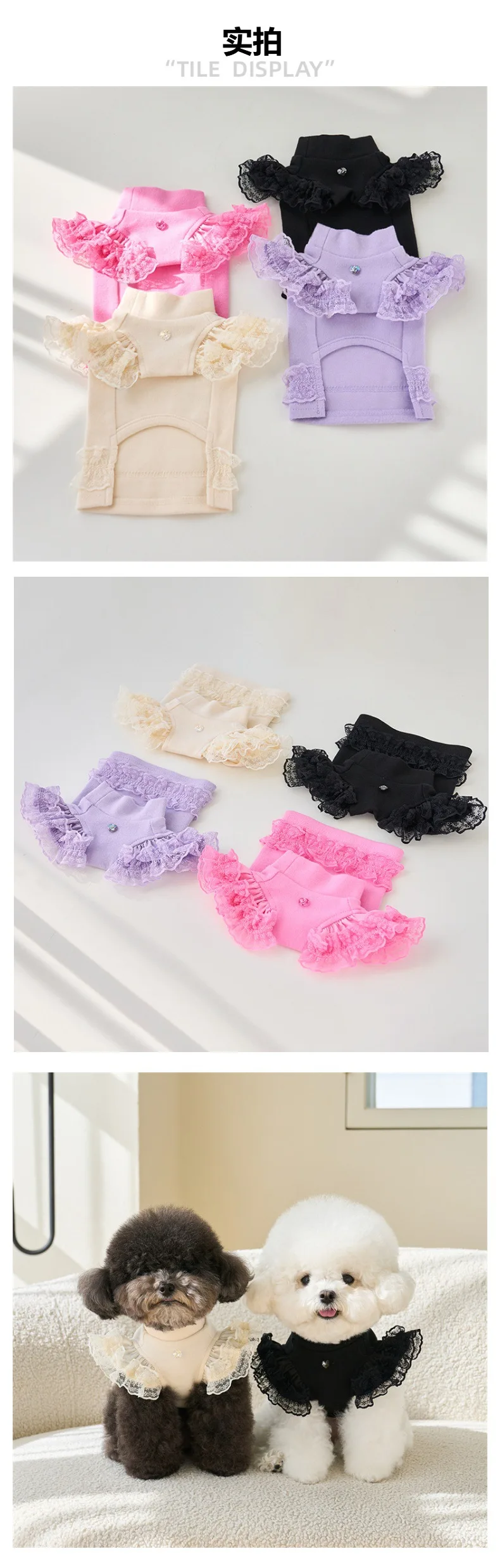 Chaleco de manga voladora de encaje para primavera, camisa Base para mascotas, camisa Base de oso de peluche, camiseta para gato, Top, ropa para cachorros, chaleco