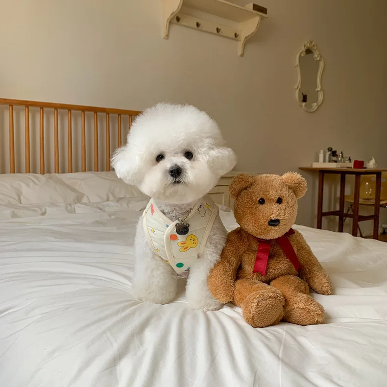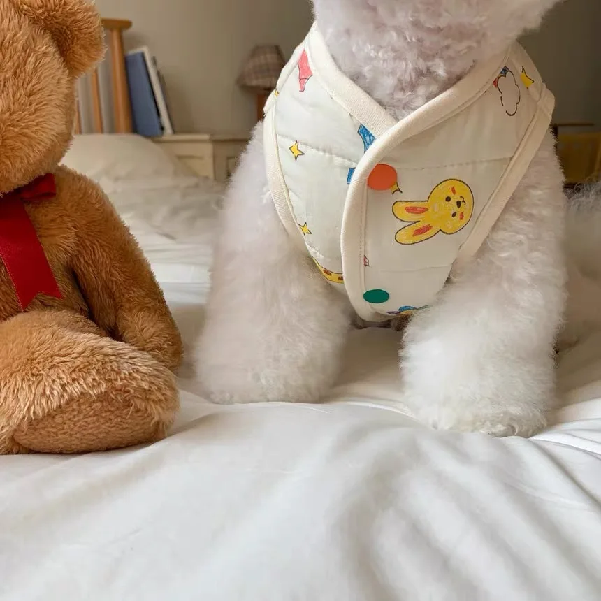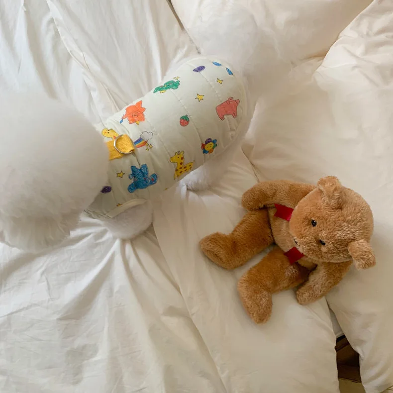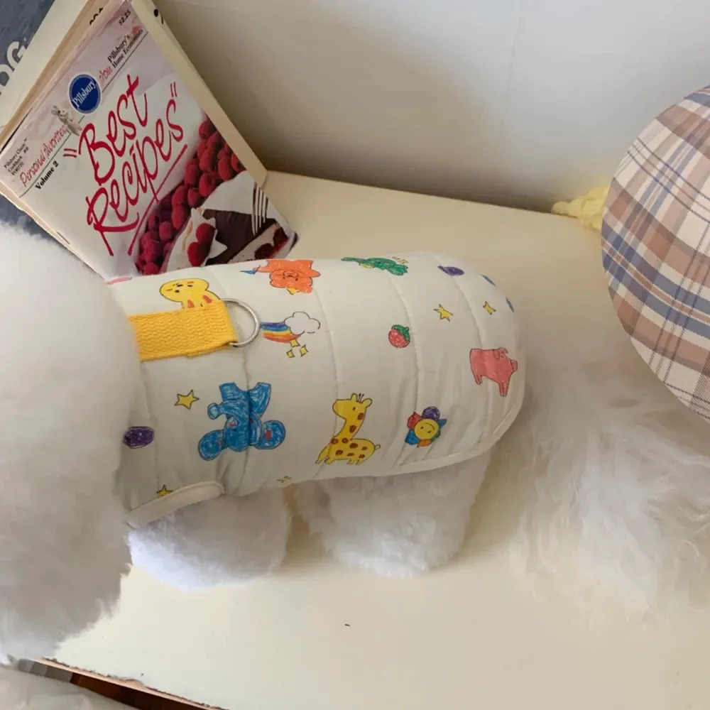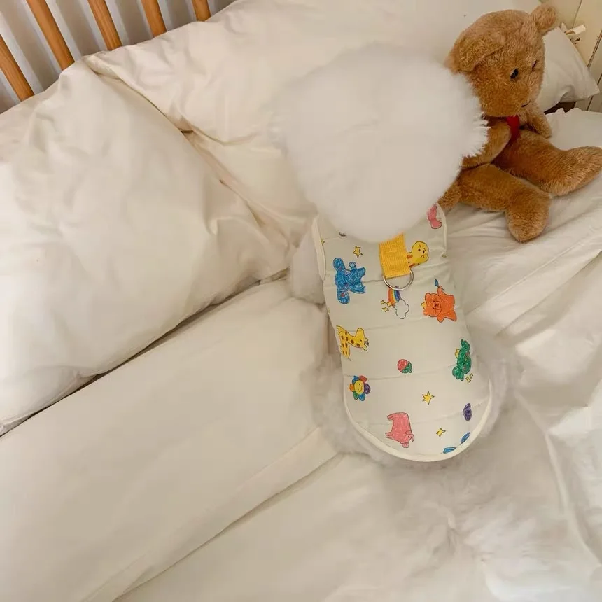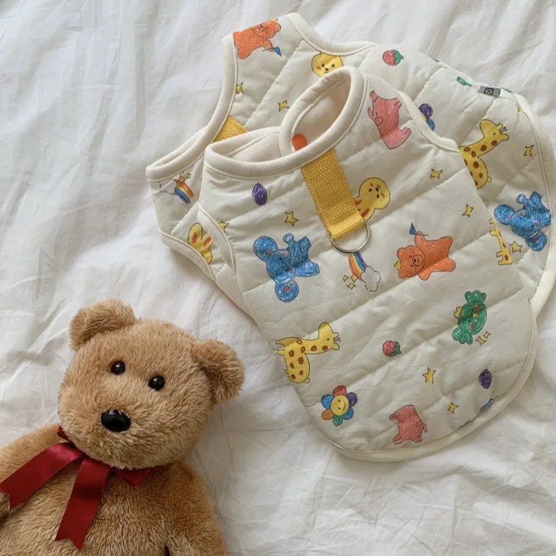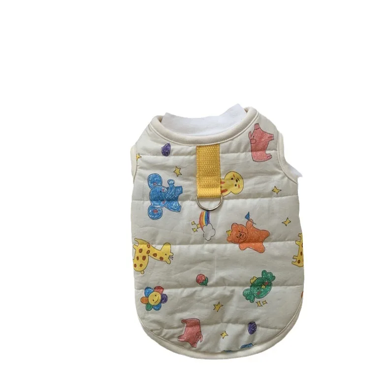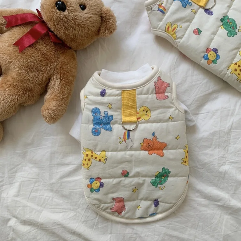Chaleco para mascotas de otoño e invierno, abrigo cálido para mascotas, gato, perro, lindo estampado de animales, camiseta sin mangas con Clip, ropa de diseñador para mascotas de tracción para perros