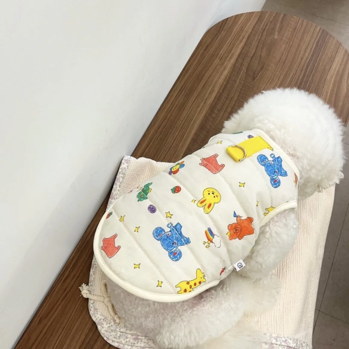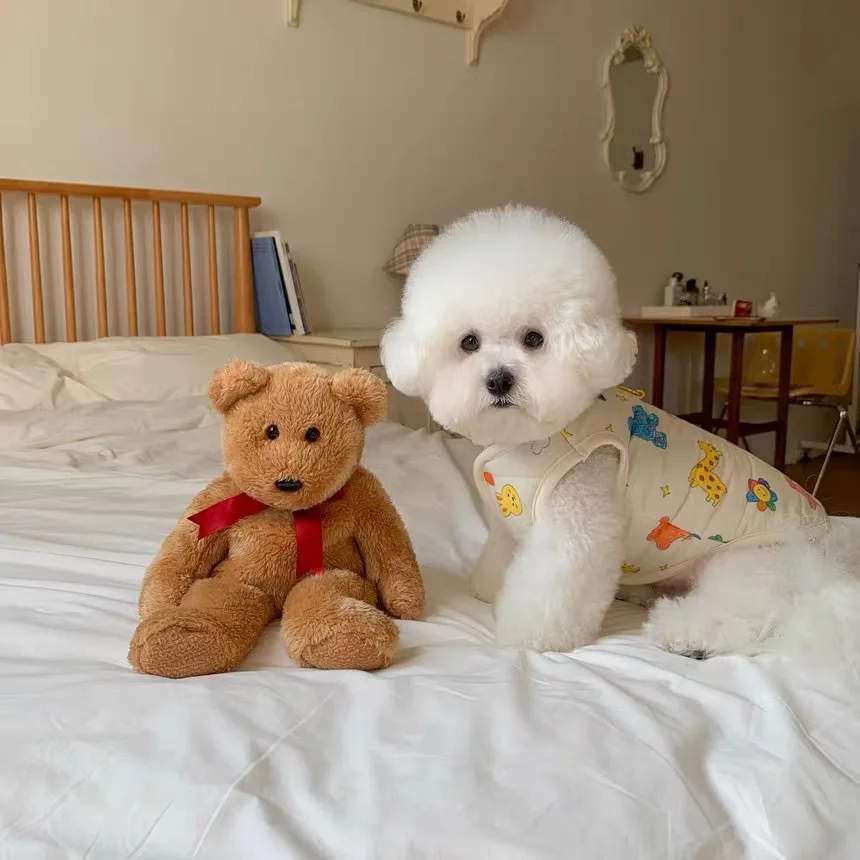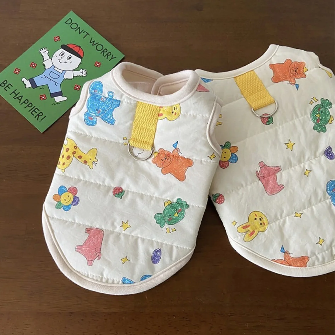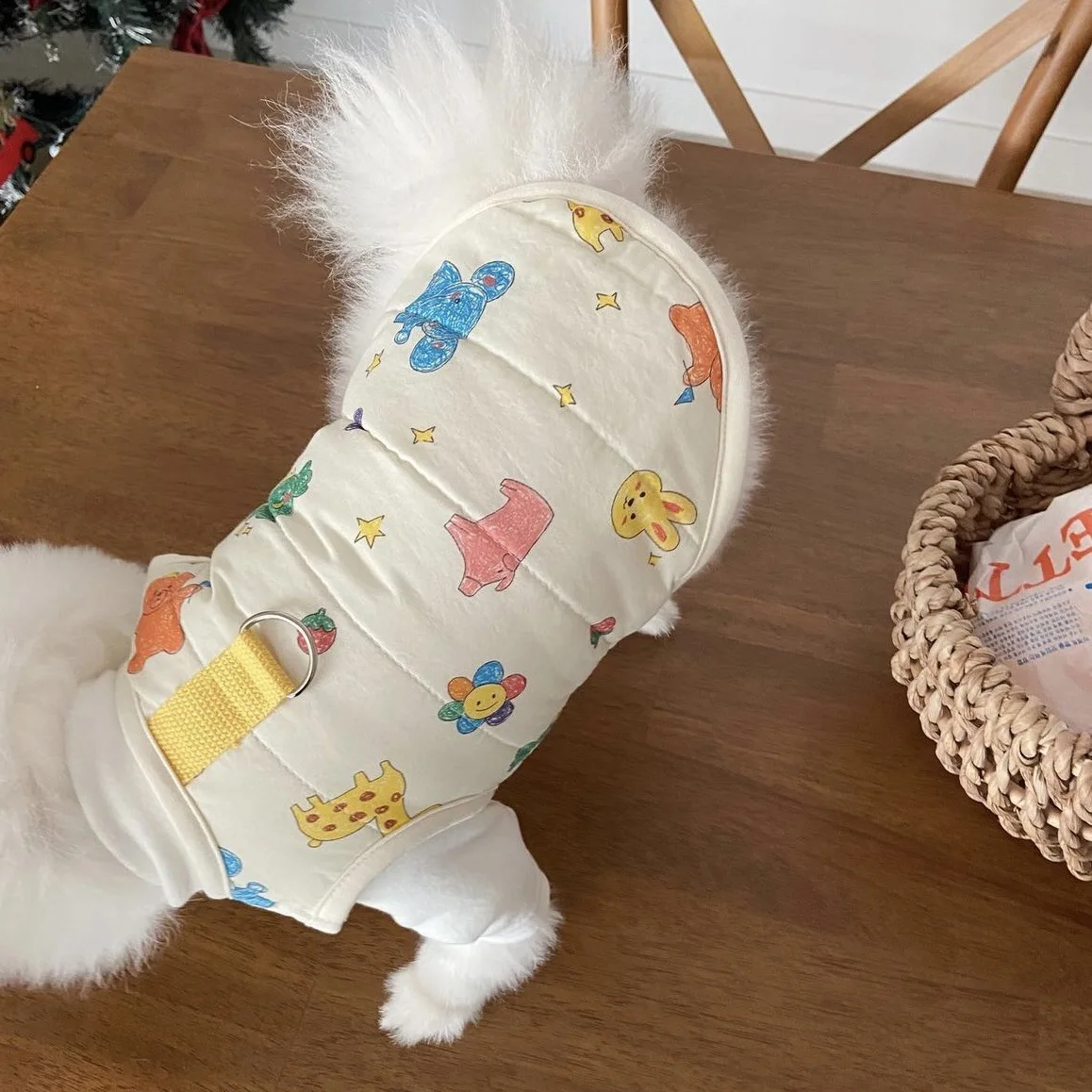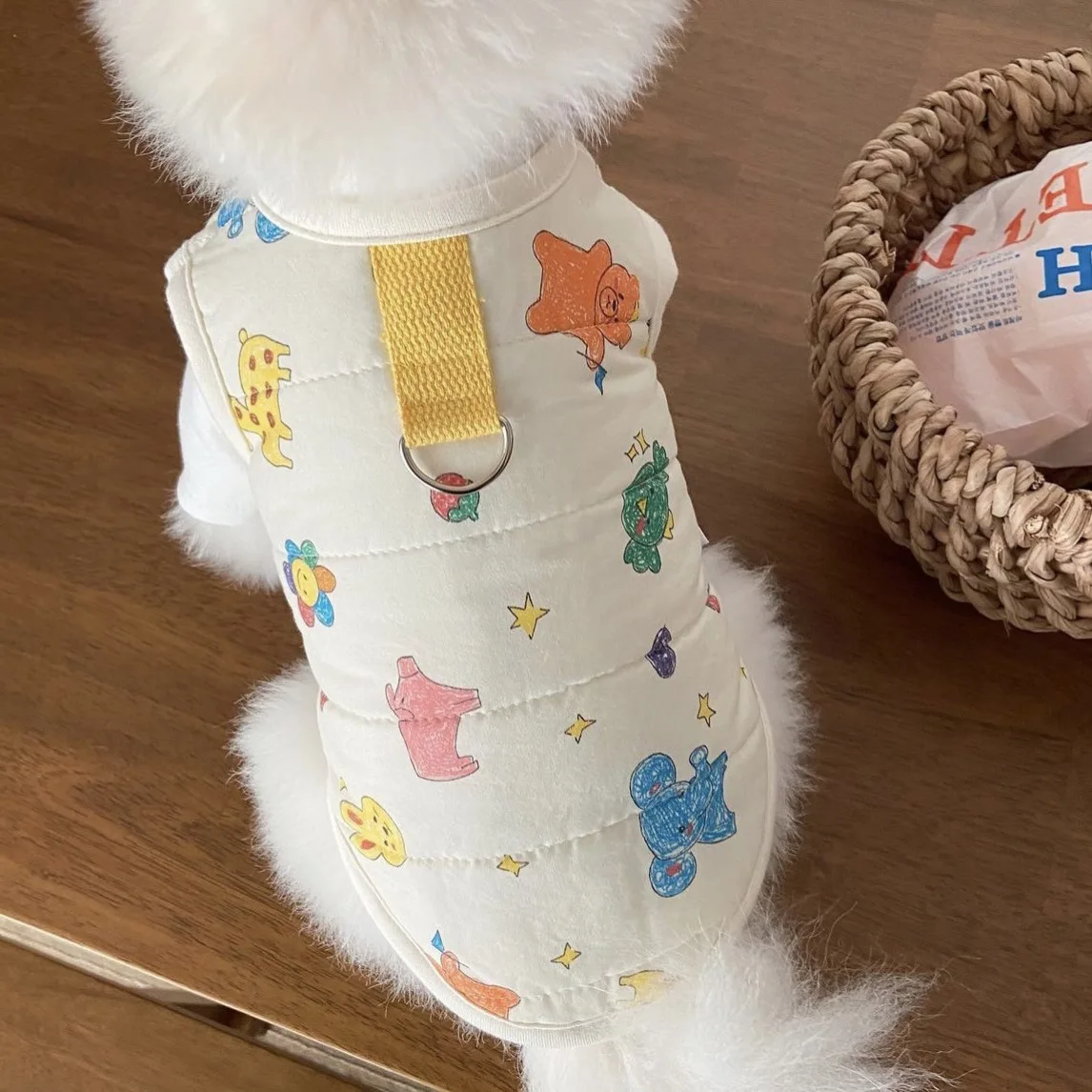 Chaleco para mascotas de otoño e invierno, abrigo cálido para mascotas, gato, perro, lindo estampado de animales, camiseta sin mangas con Clip, ropa de diseñador para mascotas de tracción para perros