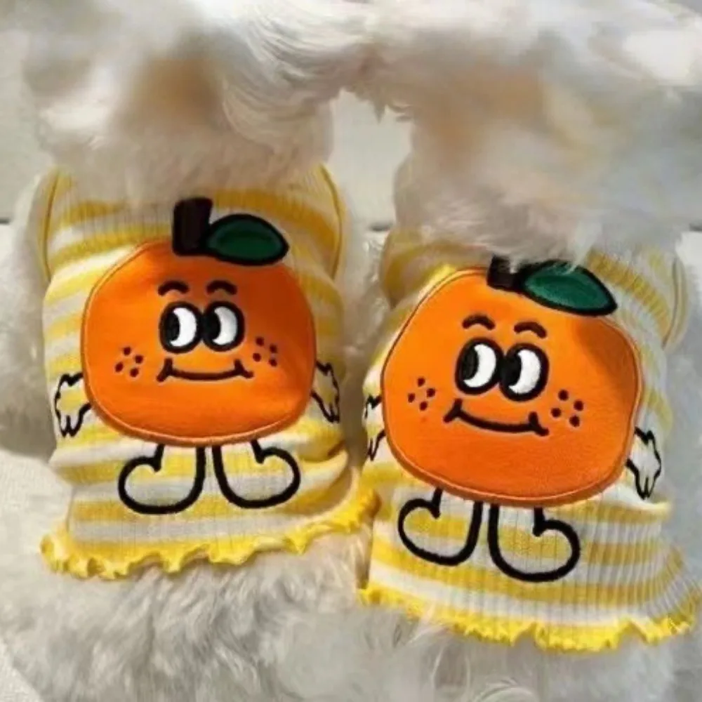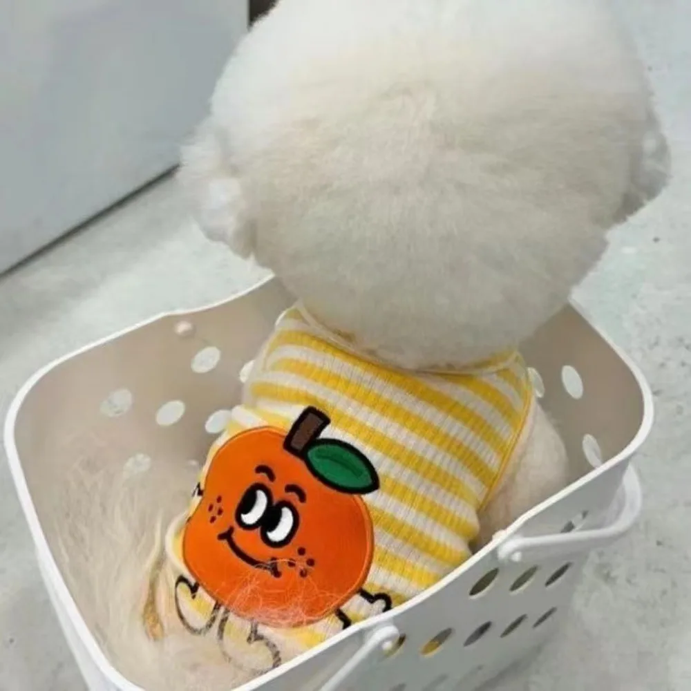 Chaleco naranja a rayas para mascotas, ropa para perros, chaleco de primavera para perros pequeños, Bomi Schnauzer, osos de peluche para gatos, ropa para cachorros de primavera
