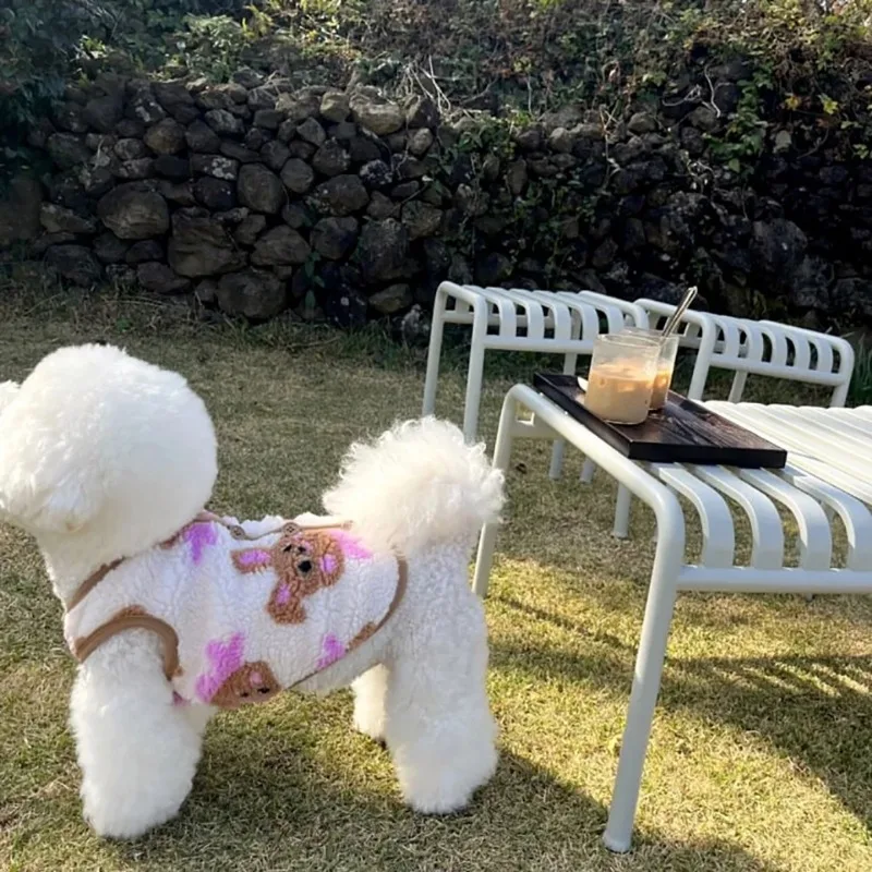Chaleco de peluche con flores rosas para mascotas, chaleco cálido para invierno, ropa para perros y gatos, ropa para cachorros de dibujos animados de Pomerania fría, productos para perros