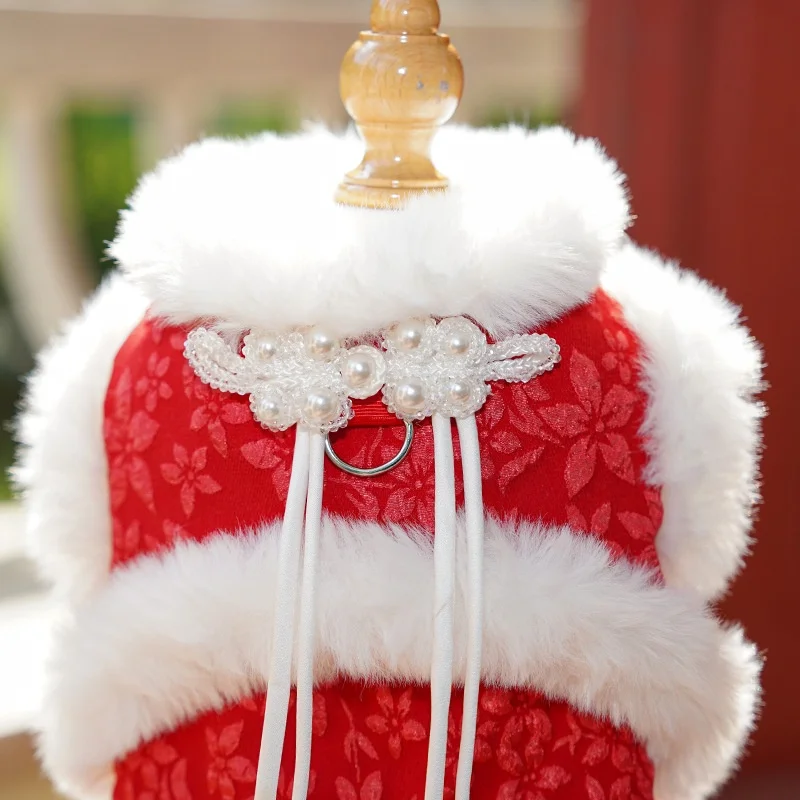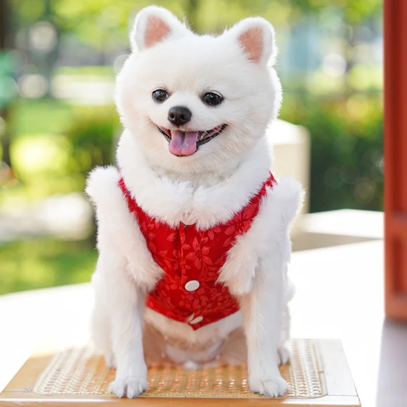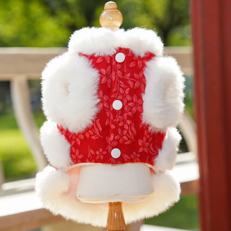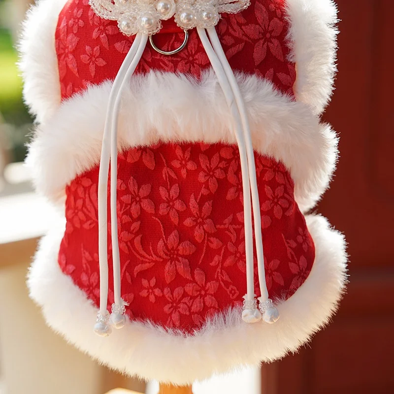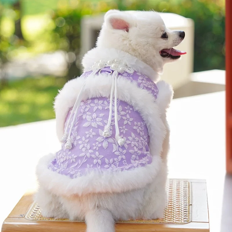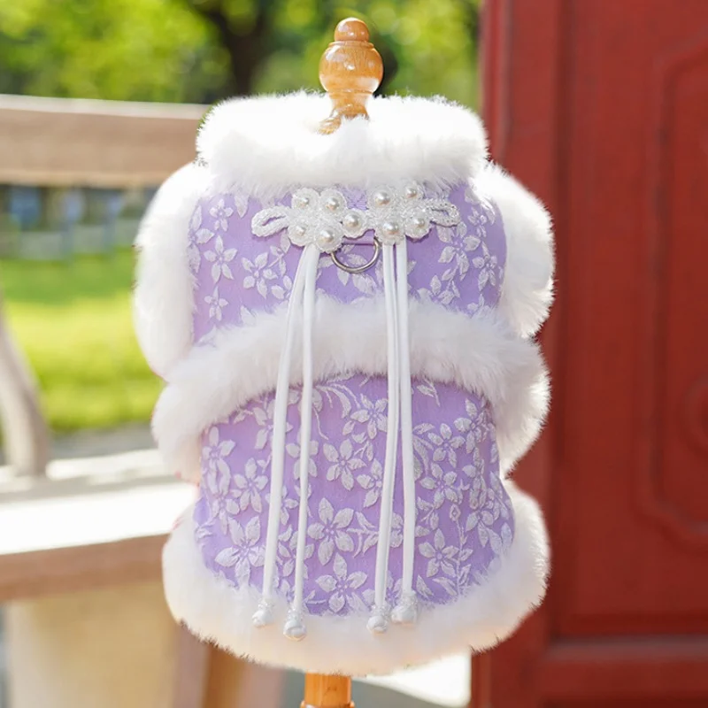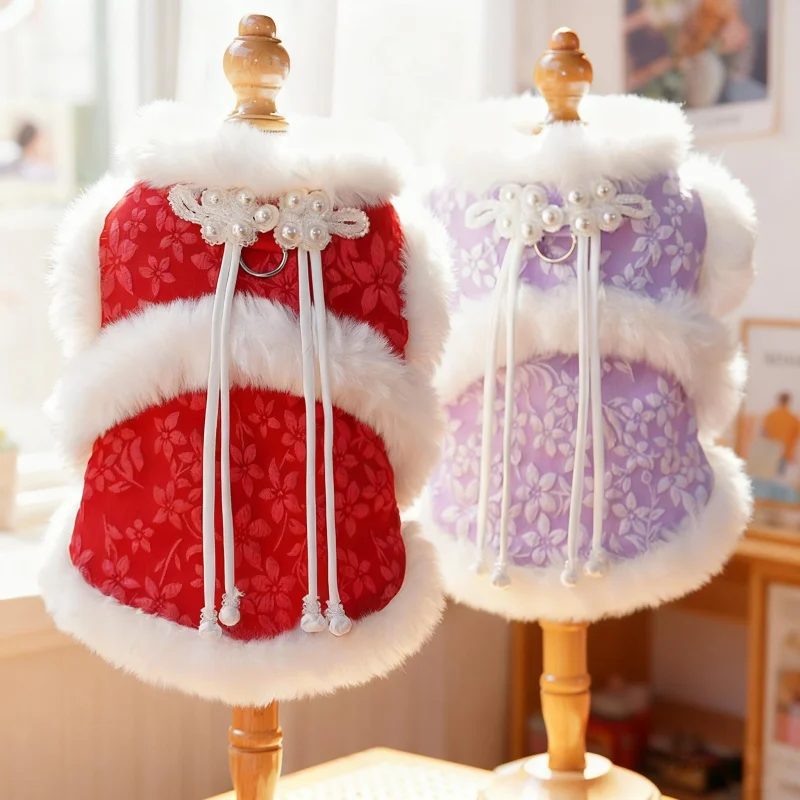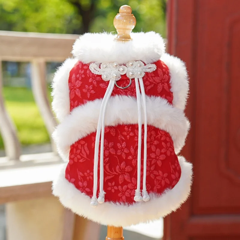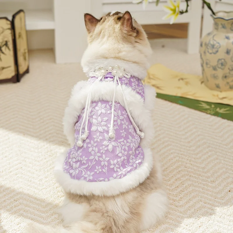 Chaleco de estilo chino para perro, chaqueta, ropa cálida de invierno para perro, abrigo con estampado Floral para cachorro, chaqueta suave y bonita para gato, abrigo, monos para mascotas de caniche