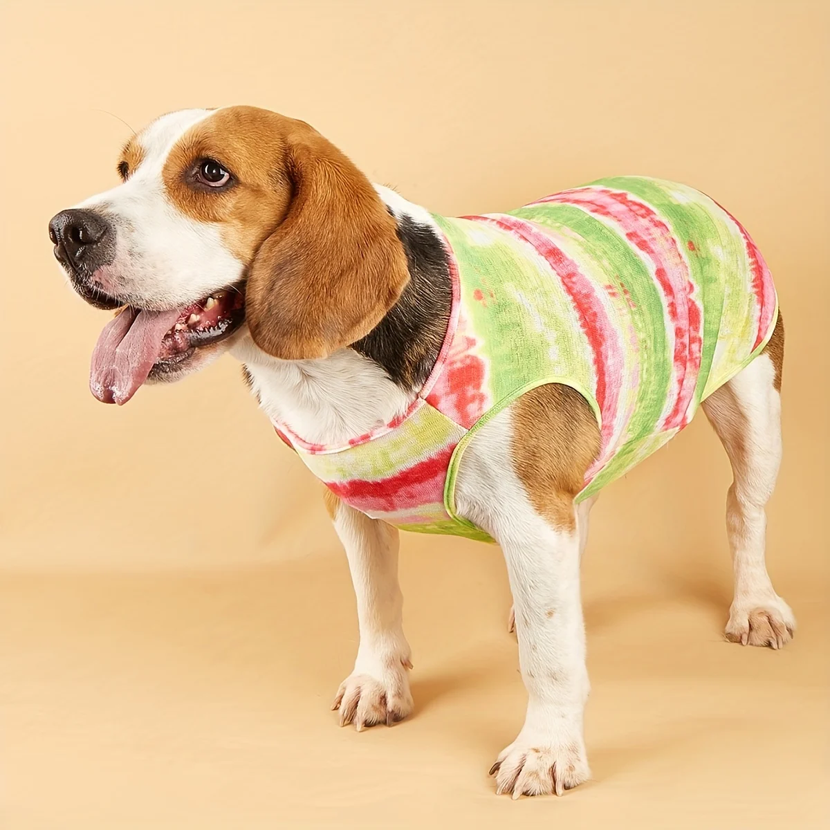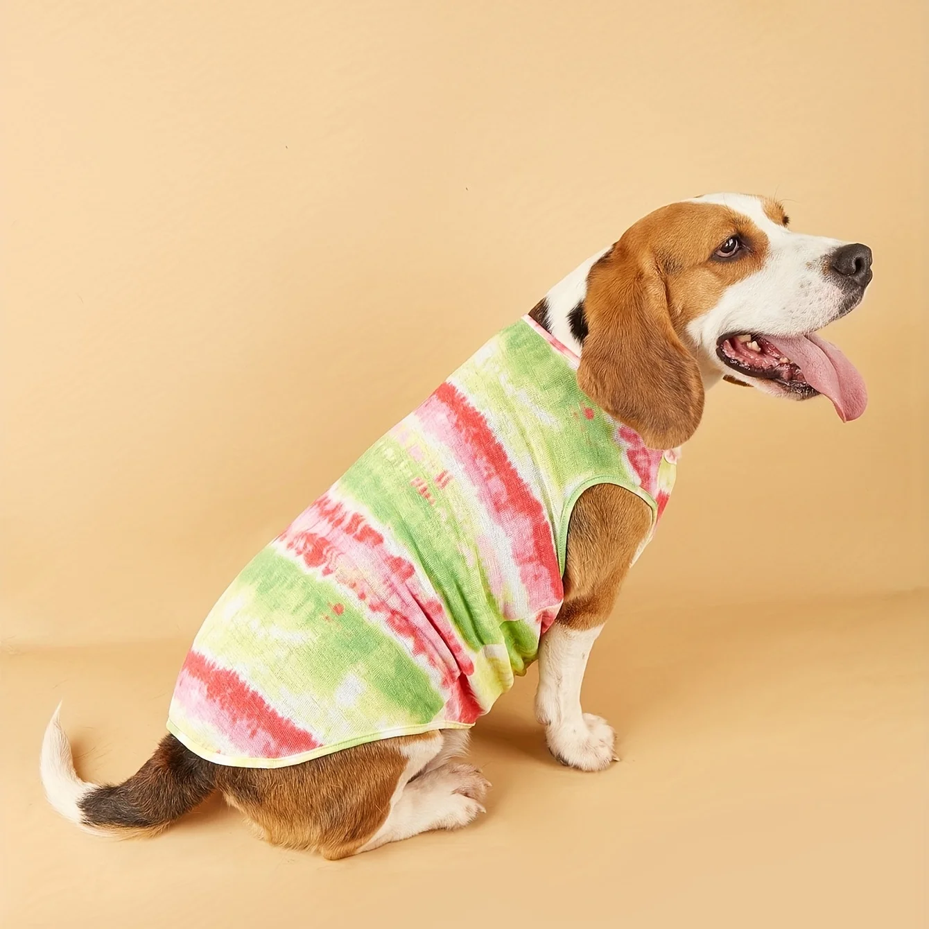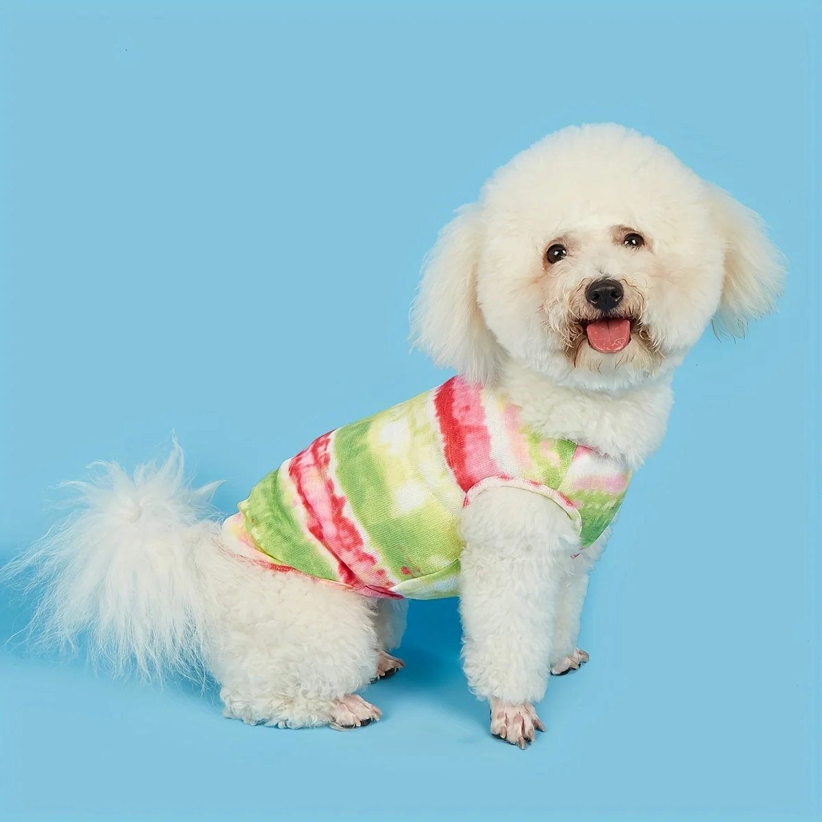 Chaleco para perros Tie-Dye, ropa transpirable de verano para mascotas para perros pequeños y medianos/gatos, camiseta sin mangas de Color degradado a la moda para mascotas