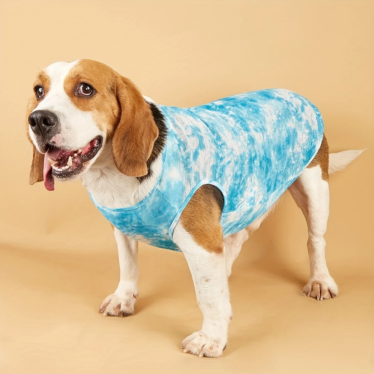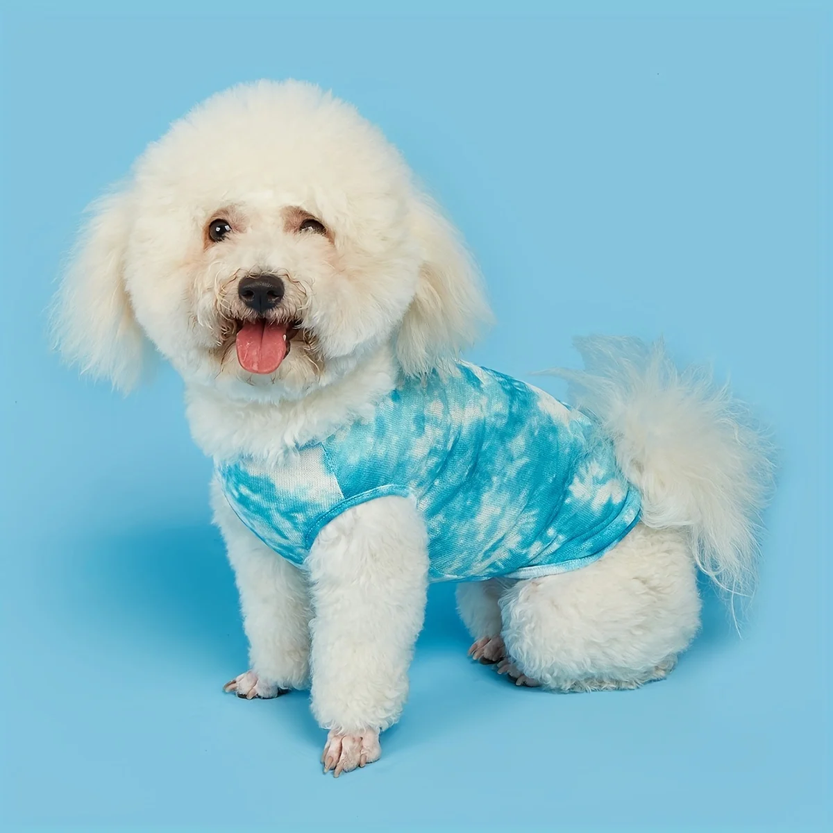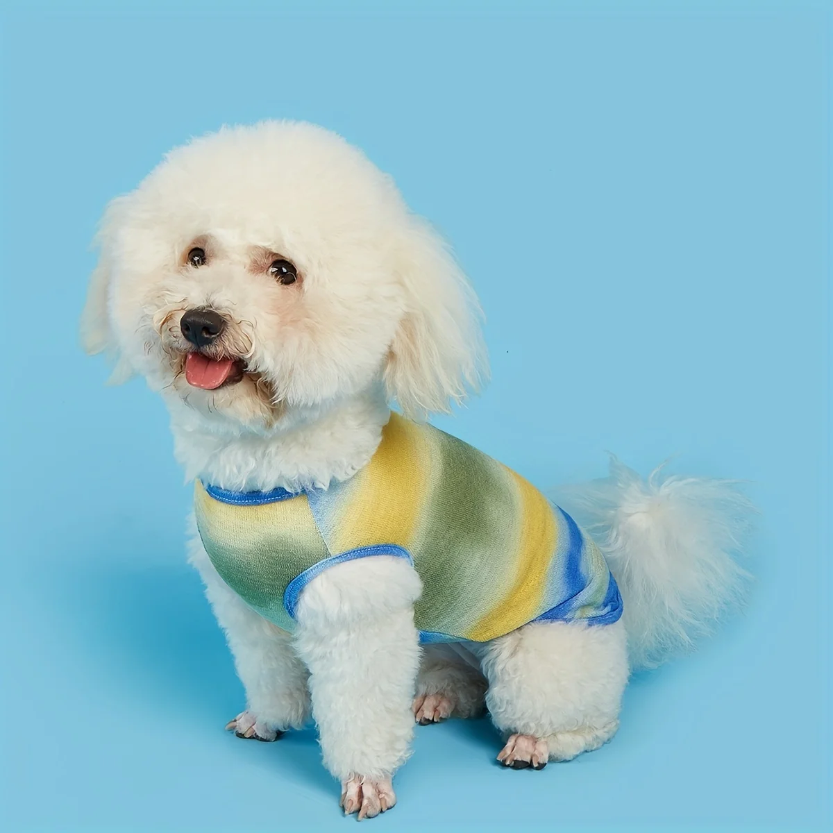 Chaleco para perros Tie-Dye, ropa transpirable de verano para mascotas para perros pequeños y medianos/gatos, camiseta sin mangas de Color degradado a la moda para mascotas