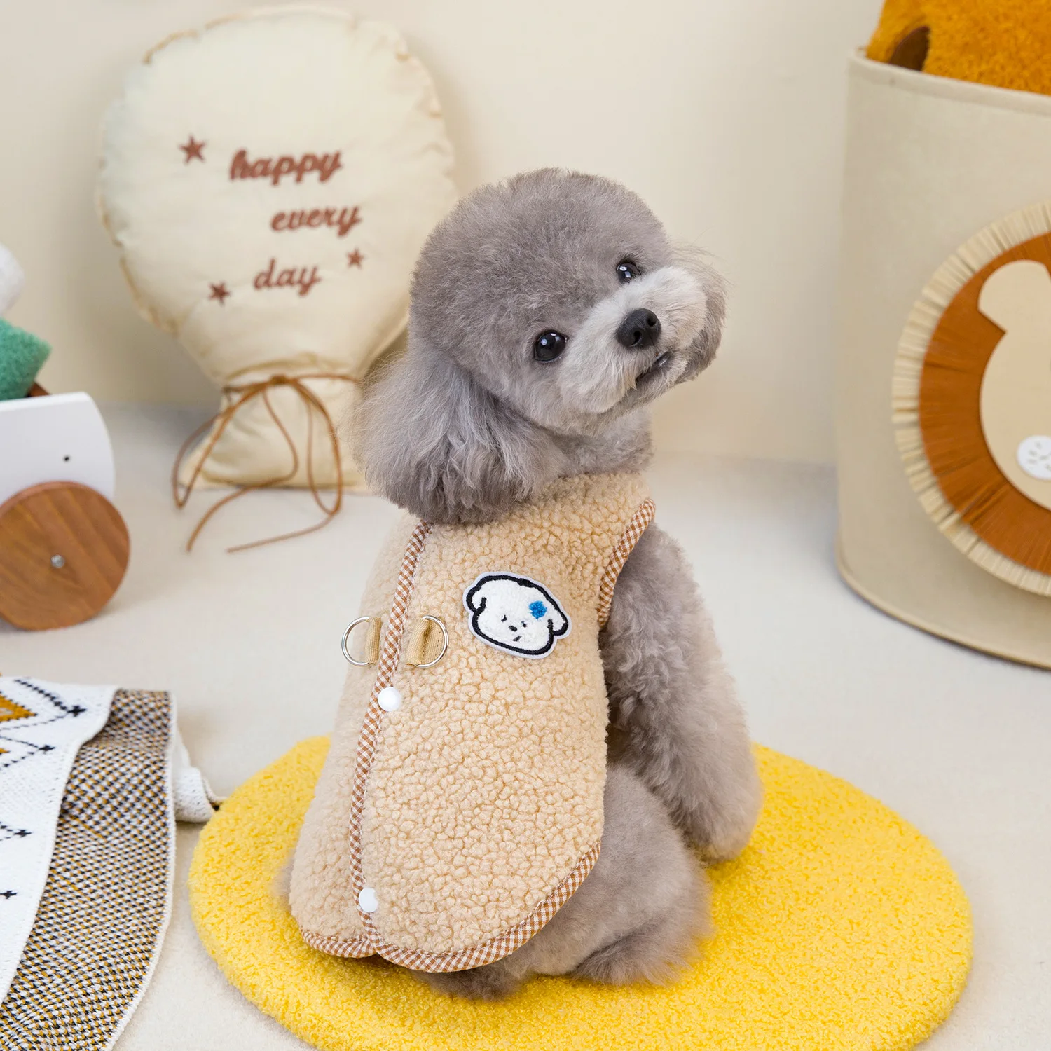 Chaleco de piel de cordero para perros, abrigo de felpa para mascotas, gato, oso de peluche de otoño e invierno, chaleco de piel de cordero granular con apertura trasera, ropa para perros pequeños