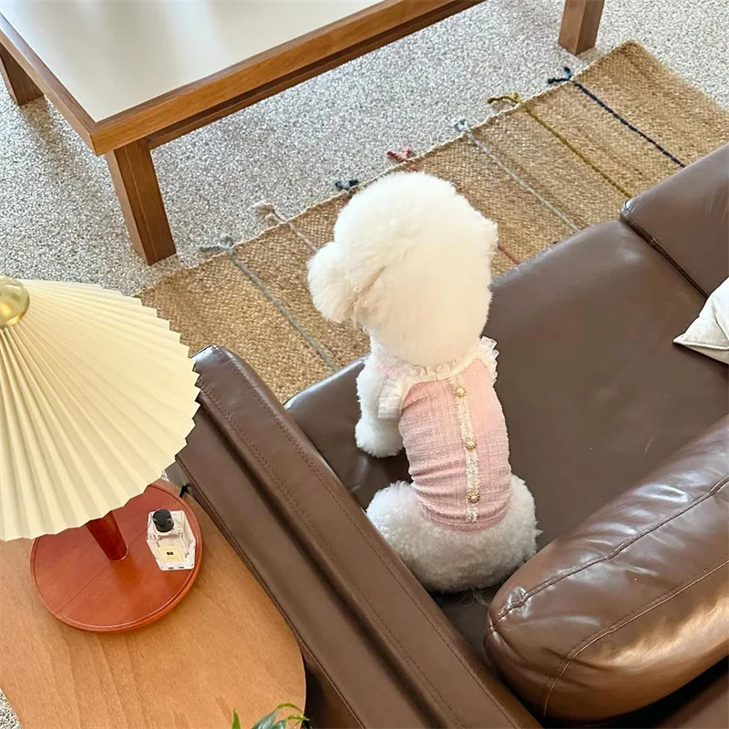 Chaleco de princesa para gato de primavera para mascotas, ropa de encaje de perlas para perros pequeños, ropa para cachorros, chaqueta para perros pequeños