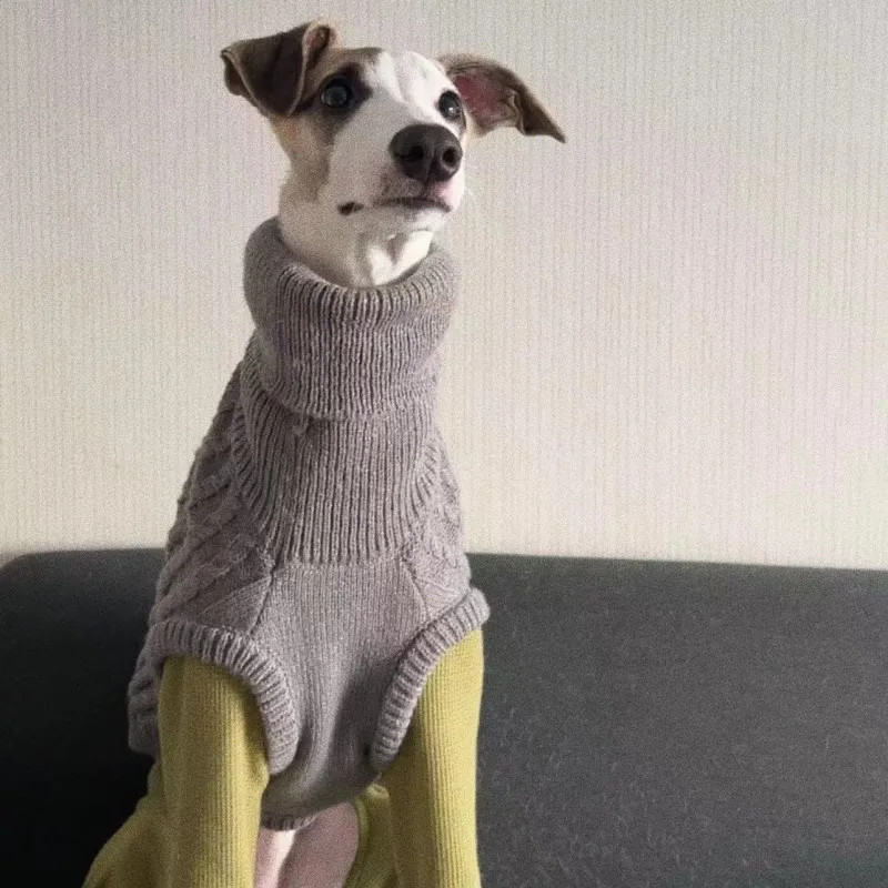 Chaleco tejido suave de invierno para cachorros, suéter de cuello alto para mascotas, chaleco tipo suéter para perros grandes Whippet Grayhound