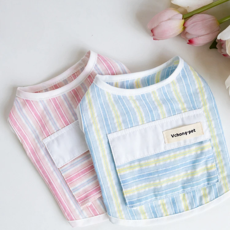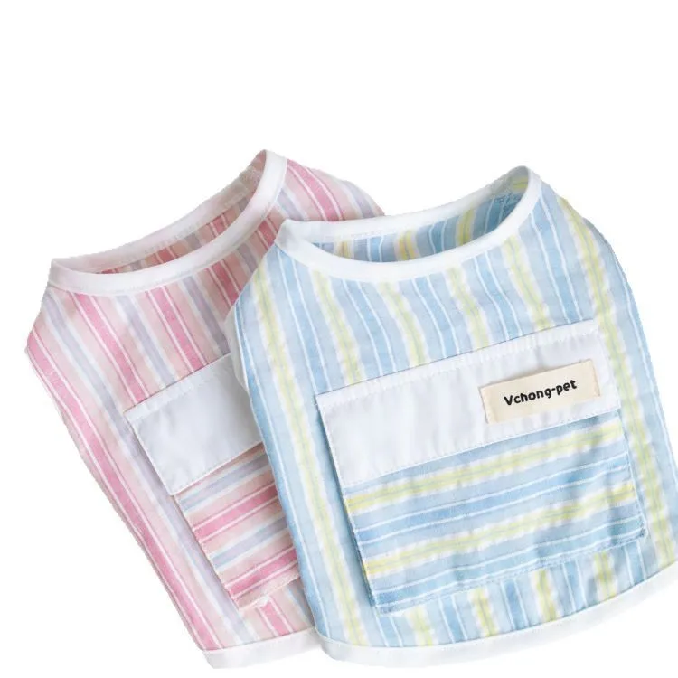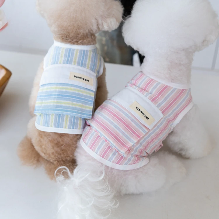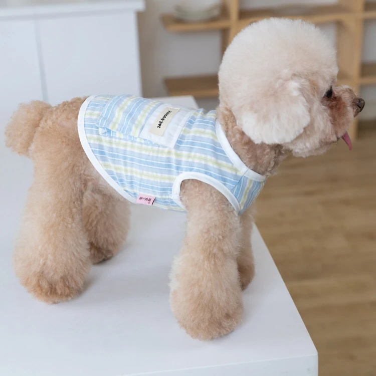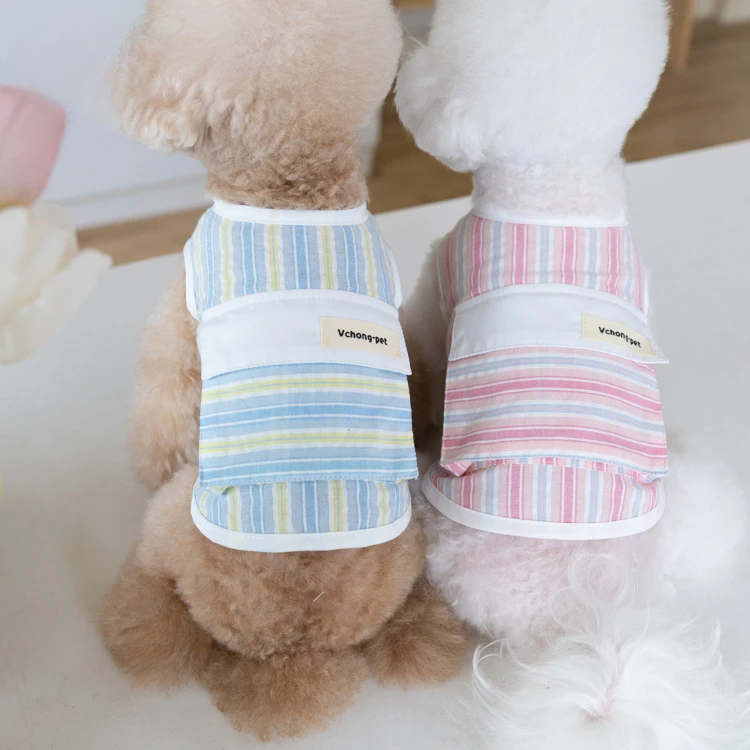 Chaleco a rayas de primavera para mascotas, sensación fresca, se puede poner en paquetes de hielo, chaleco para exteriores para mascotas, ropa para cachorros de peluche para perros pequeños