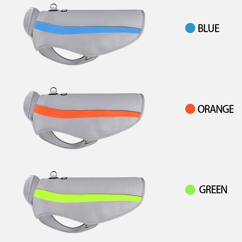 REFLECTANTE DEL CALOR: la chaqueta refrescante para perros funciona como sombrilla y el color gris refleja el calor del sol, el color verde tiene mayor visibilidad, la cuerda interior ayuda a ajustar el tamaño y la cuerda con reflectante ayuda a la seguridad.