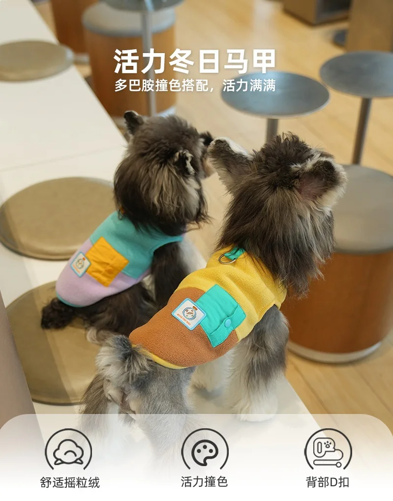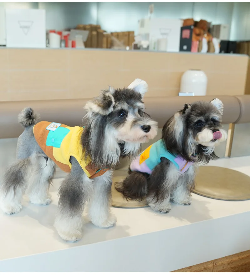 Chaleco de retazos de otoño e invierno para mascotas, abrigo para perros pequeños y gatos, chaleco de dos patas con oso de peluche, ropa para cachorros, ropa para perros pequeños