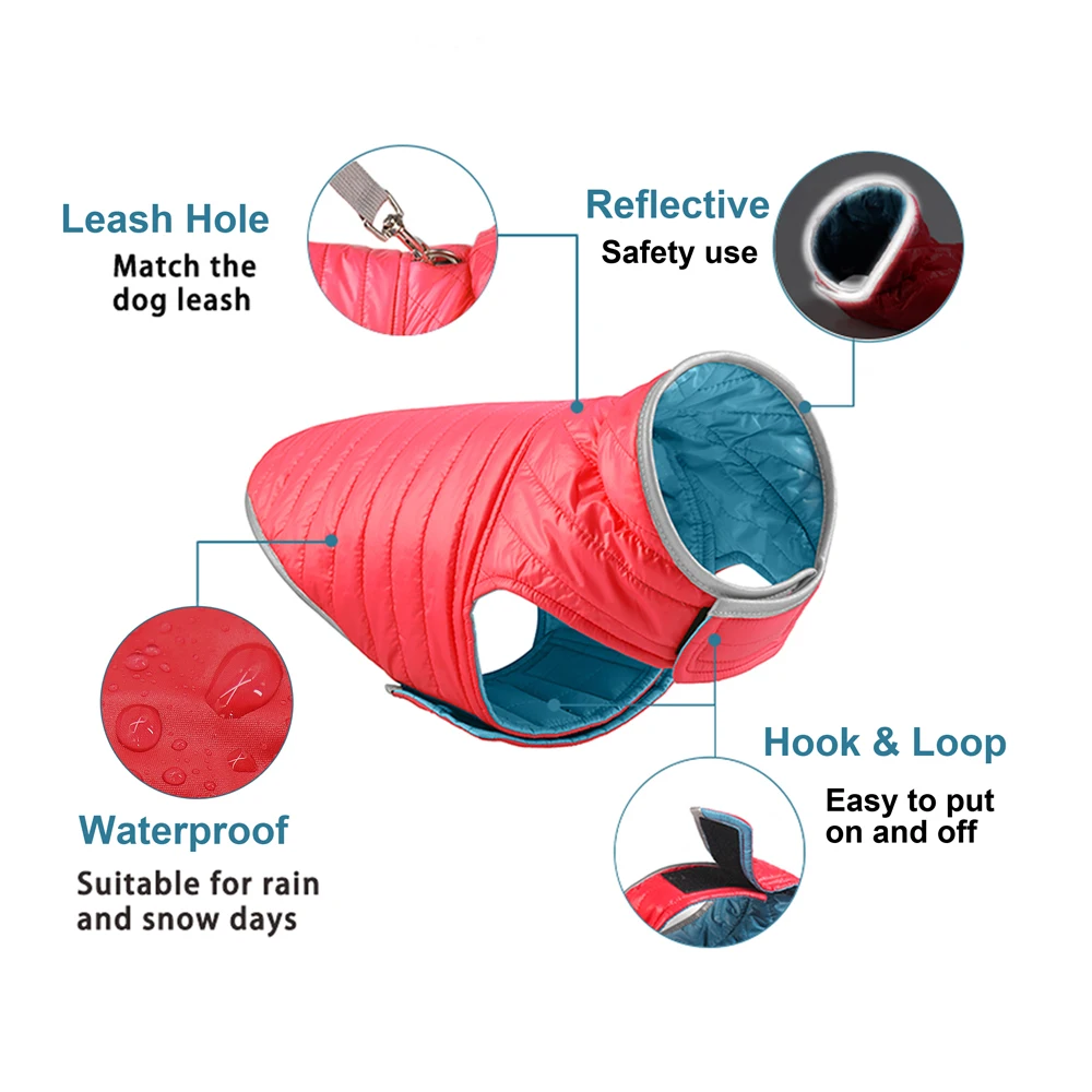 Chaleco Reversible para perros ropa impermeable chaqueta para perros abrigo grueso cálido para mascotas ropa de invierno capa atuendo para perros pequeños grandes S-2XL