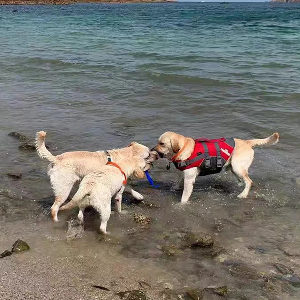 2. La parte posterior del chaleco salvavidas está diseñada con un mango manual, que es conveniente para tirar y evitar ahogarse cuando el perro está nadando