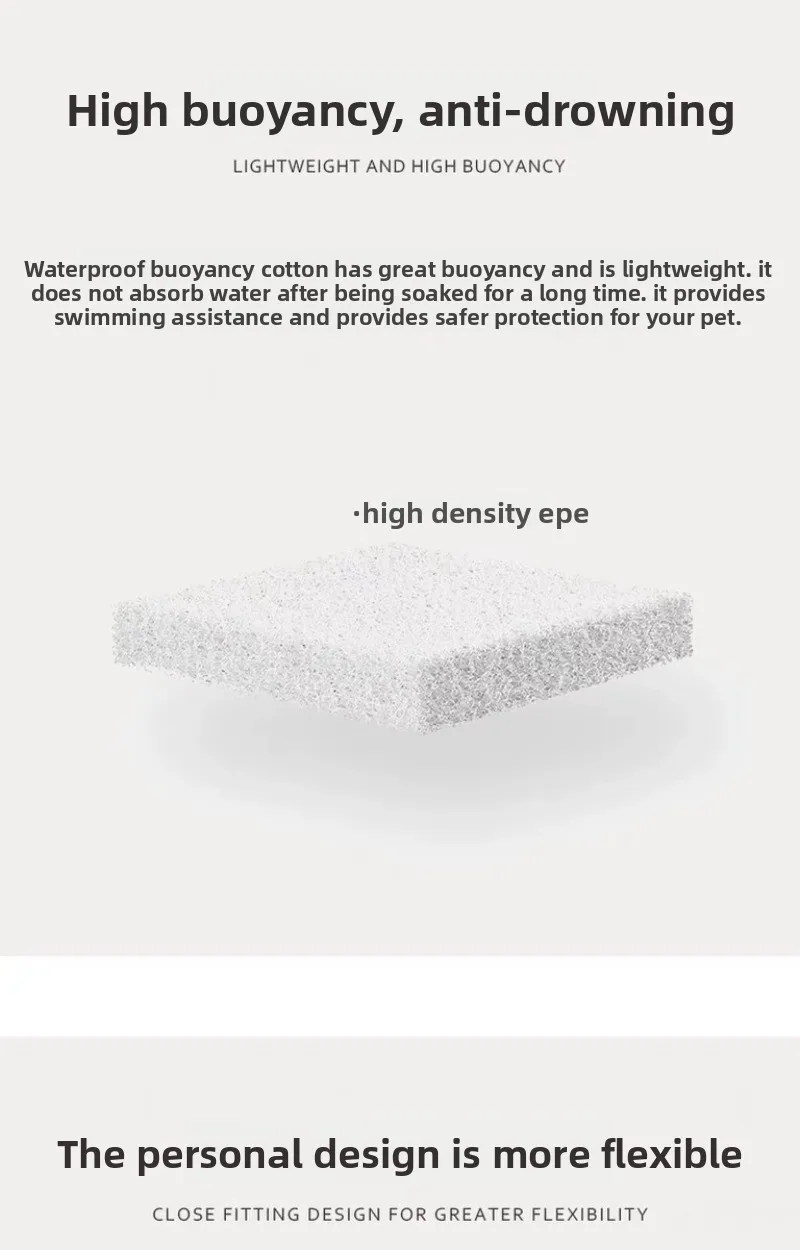 2.Algodón de flotabilidad impermeable, gran flotabilidad y luz, no absorbe agua después de remojar durante mucho tiempo, brinda ayuda para nadar y brinda protección más segura para las mascotas.