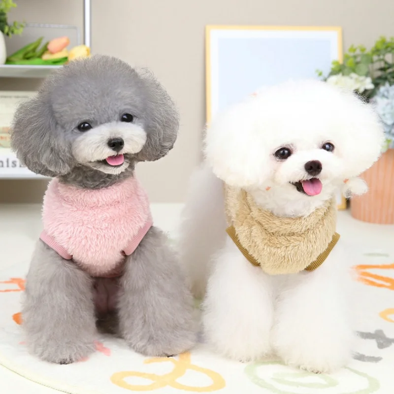 Chaleco liso a la moda para perros, ropa cálida para invierno, sudaderas con capucha para perros, sudadera bonita para cachorros, sudaderas con capucha de gato de felpa suave, jerséis para mascotas, suministros para perros