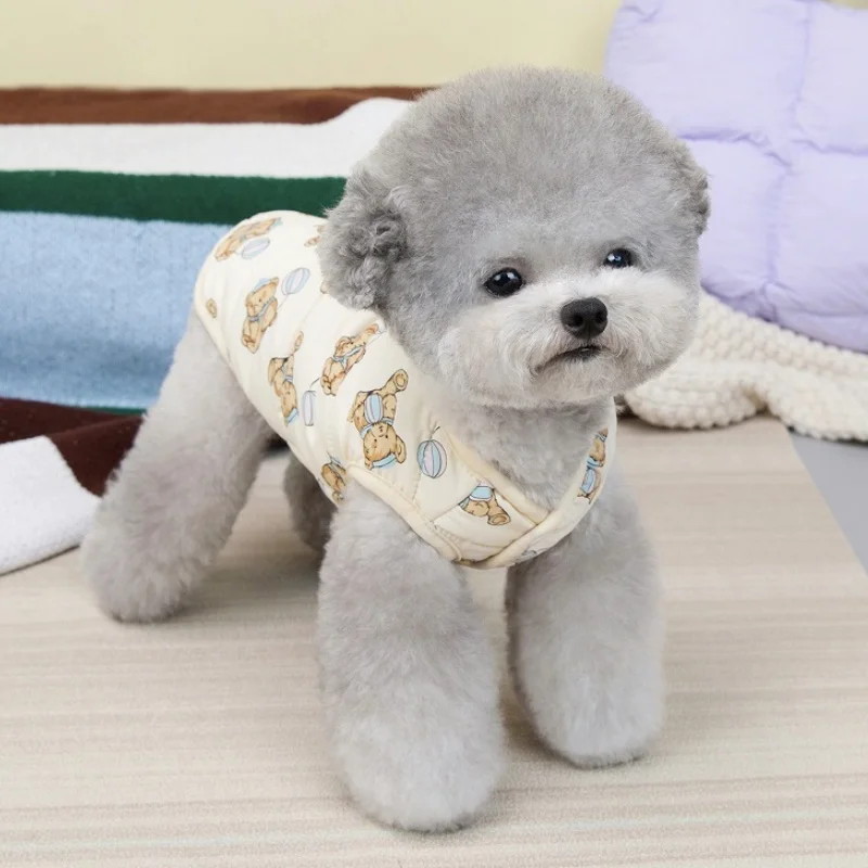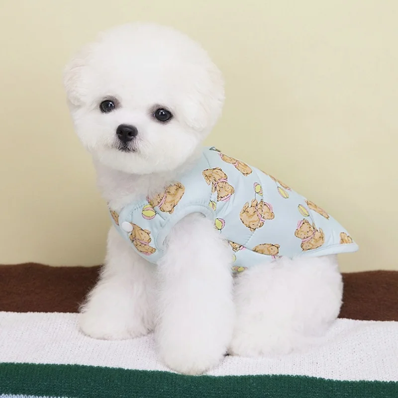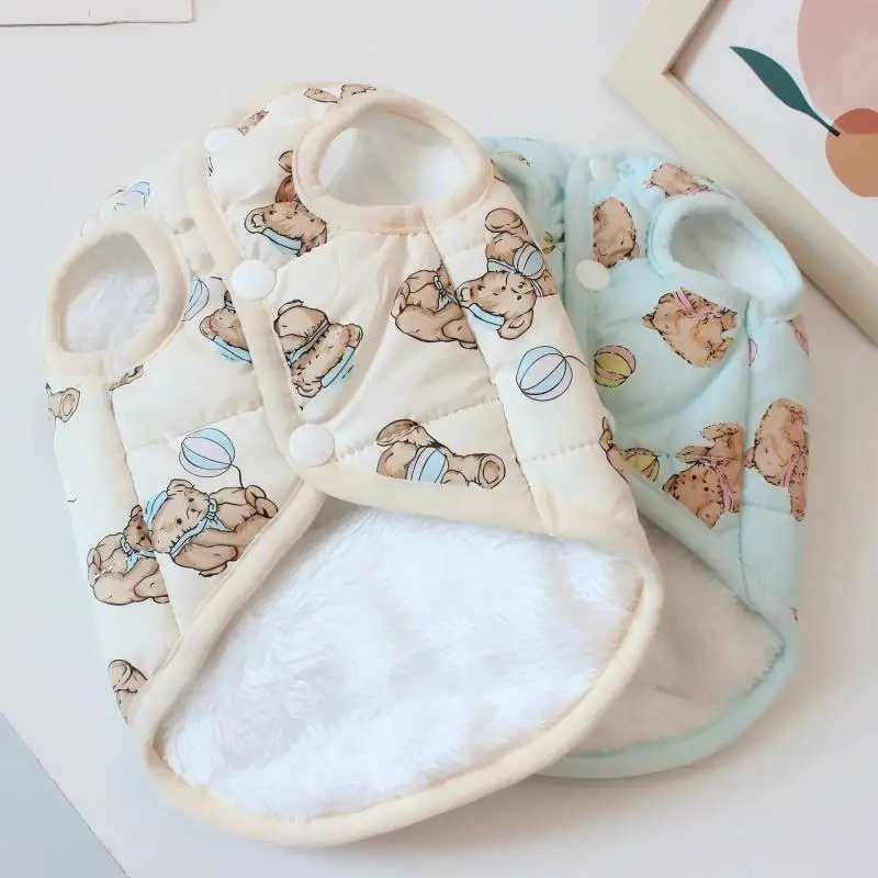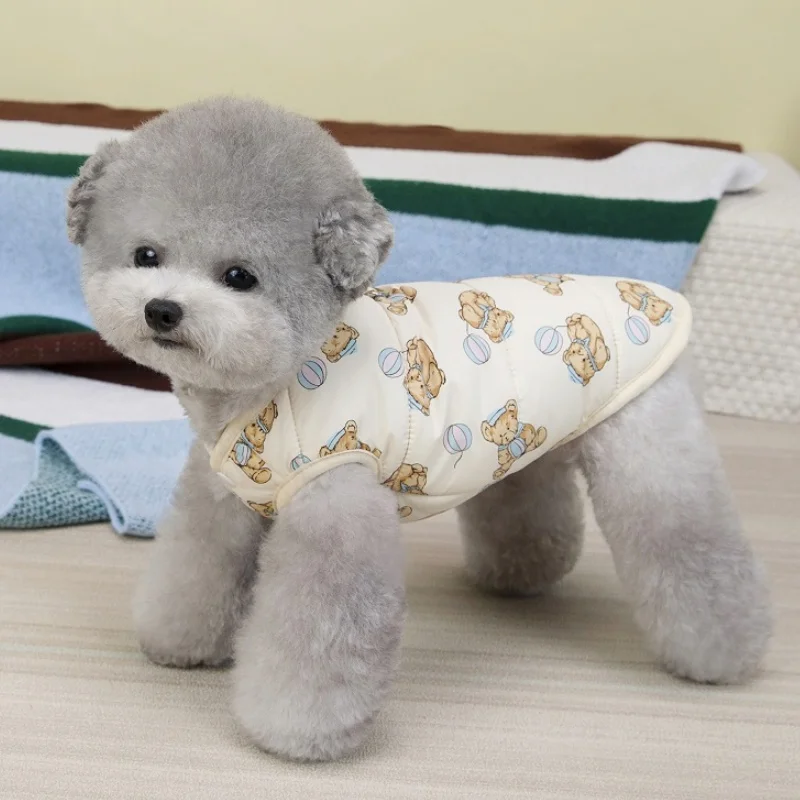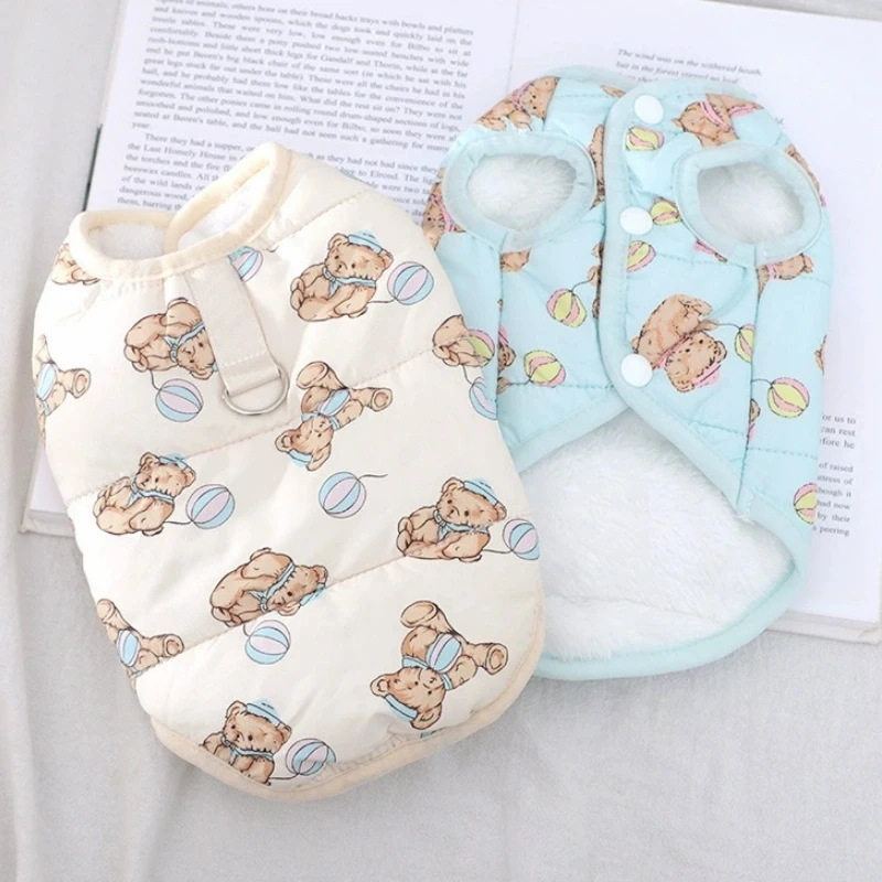 Chaqueta de chaleco suave y bonita para perro, ropa cálida de invierno para mascotas, abrigo de algodón de lujo para cachorros, chaqueta de gato con patrón de oso, disfraz de caniche Chihuahua