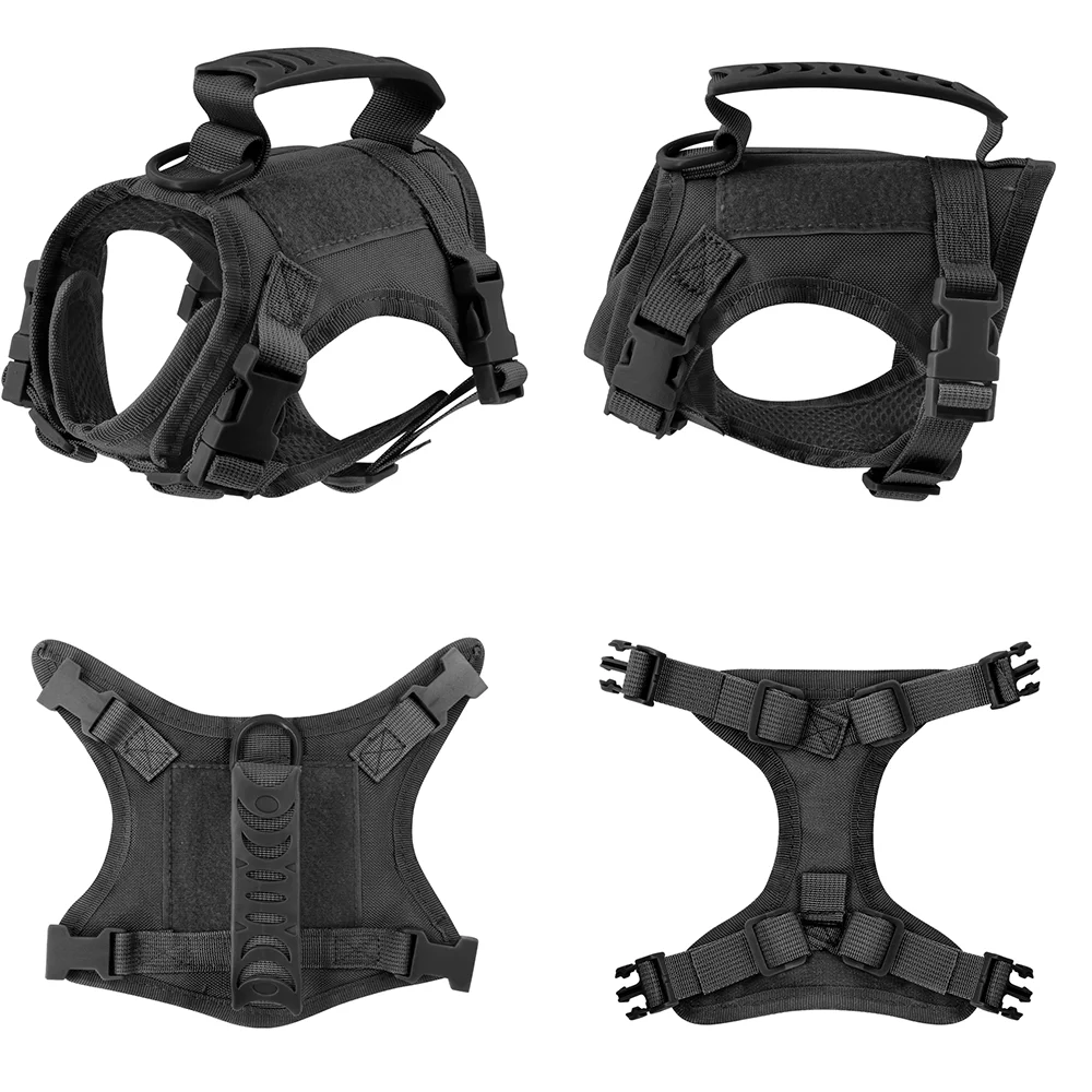 Military Style: The harness features two straps on each side and a buckle panel for easily attaching a pouch or identification panel.