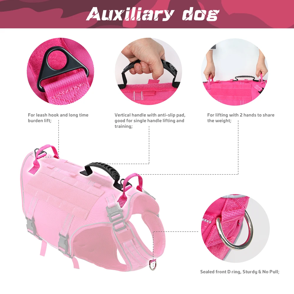 Chaleco táctico de entrenamiento para perros, arnés militar sin tirones, ajustable, K9, arnés de senderismo para perros, chaleco de trabajo para perros medianos y grandes