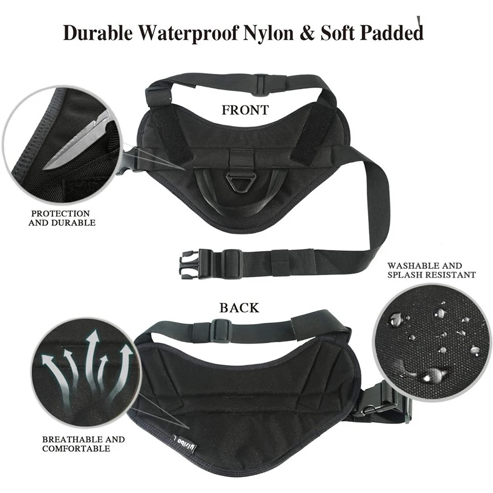 Este arnés táctico está hecho de material de nailon 900D duradero y de alta calidad con costuras limpias y forro acolchado suave para evitar rozaduras en la piel y el cabello de su perro con un ajuste cómodo.