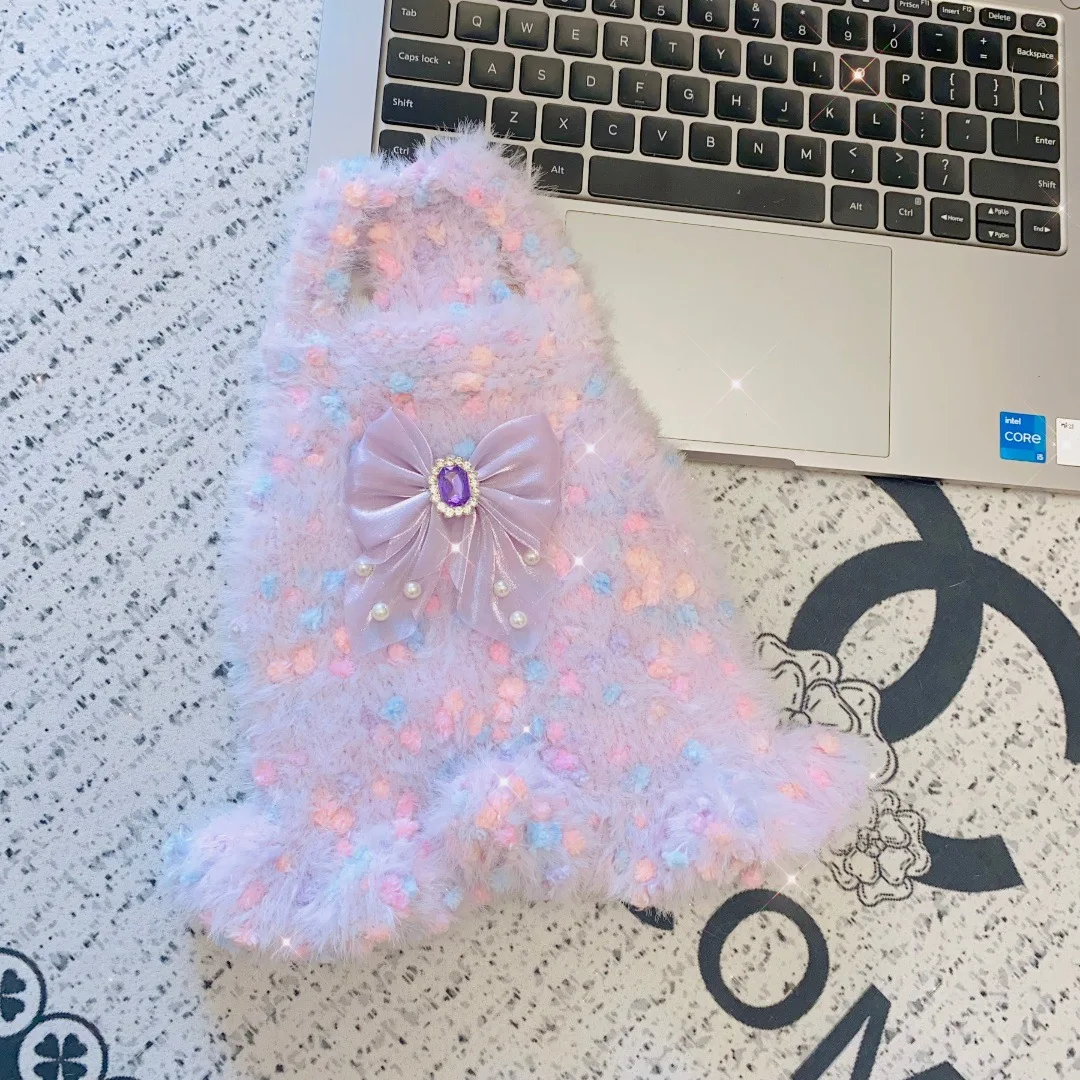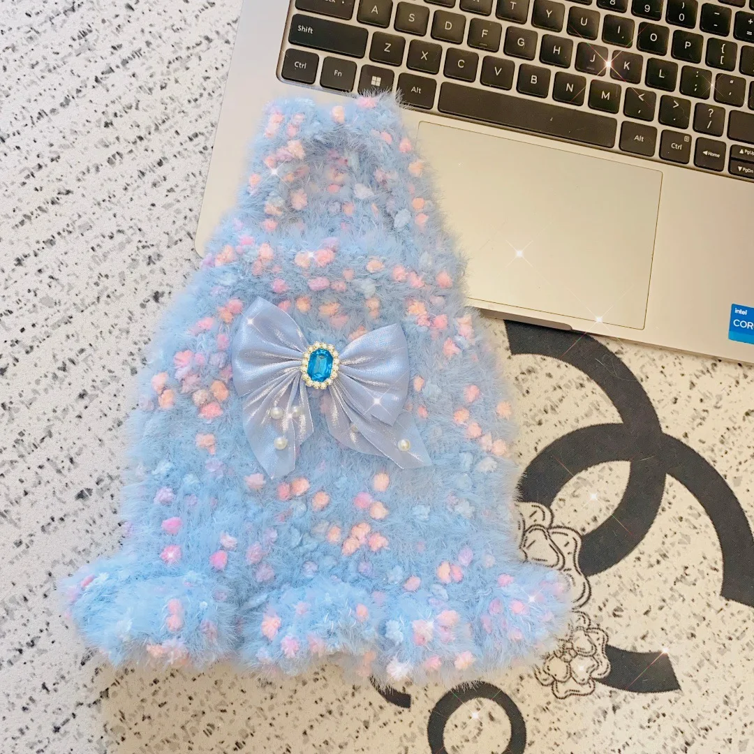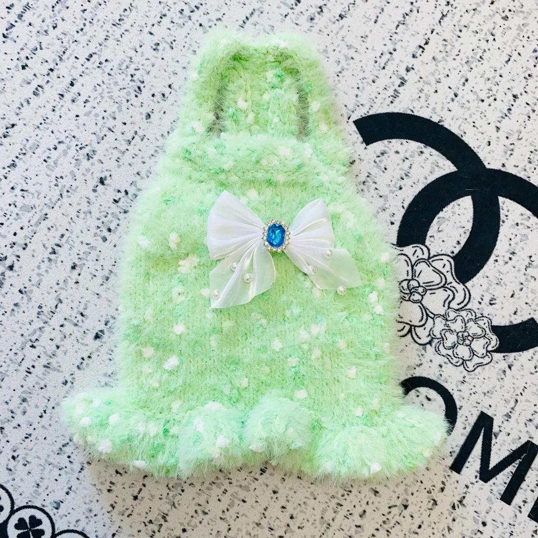 Chaleco tejido de color helado para perros y gatos, vestido con lazo para mascotas de otoño e invierno para perros pequeños (yorkshire/teddy), ropa para cachorros