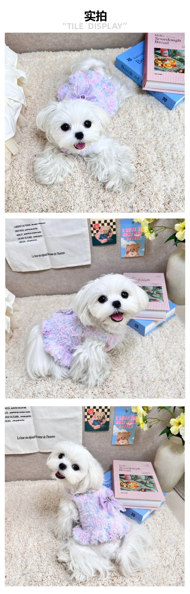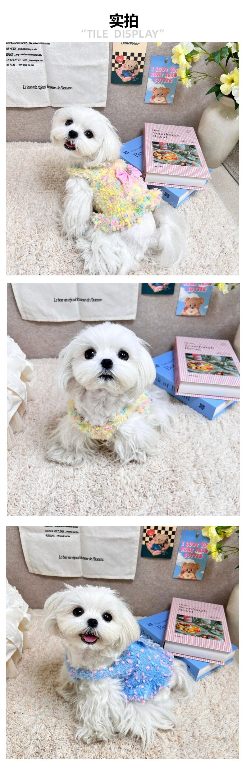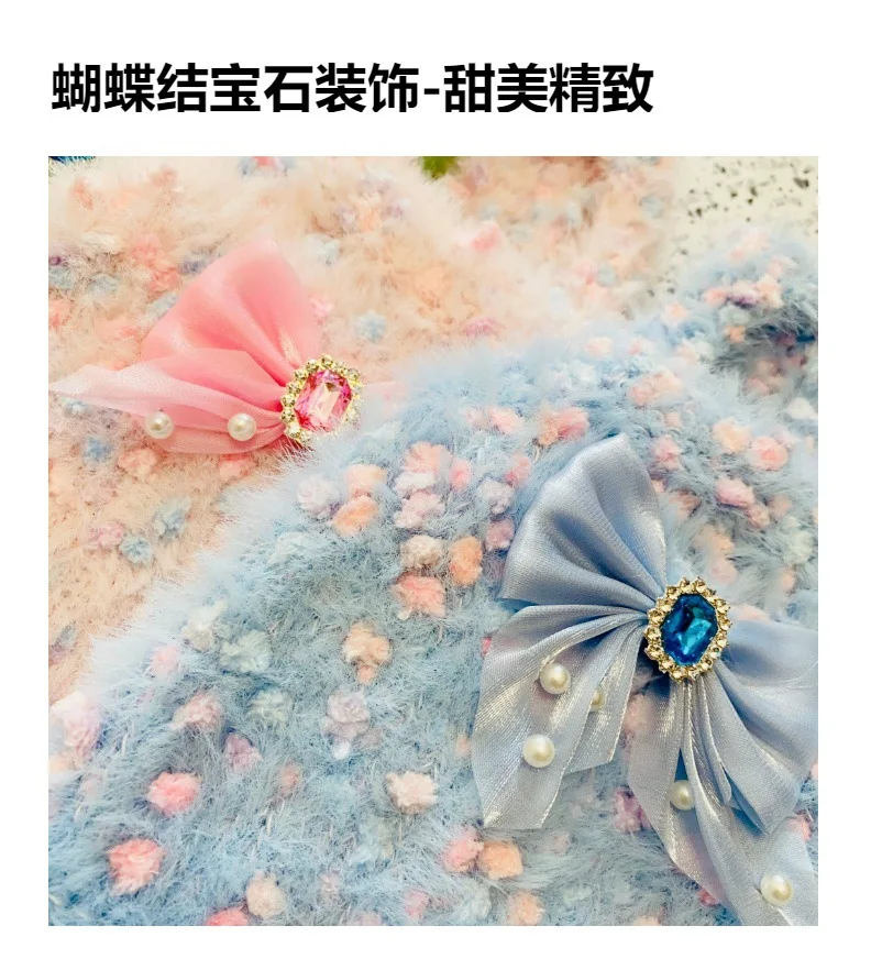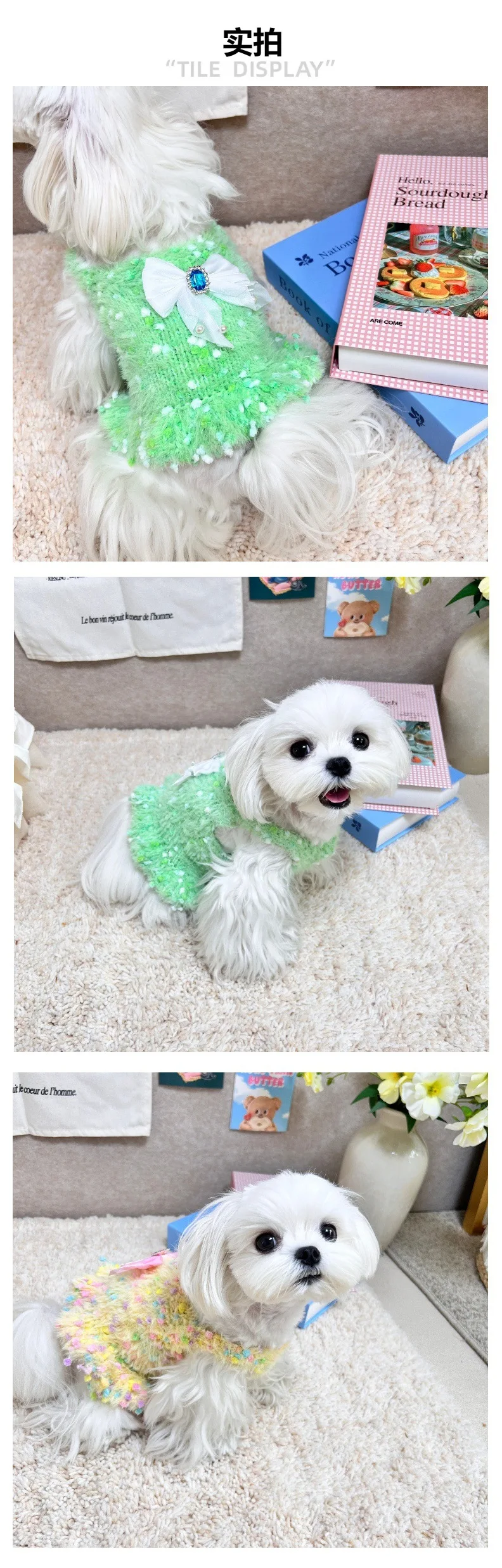 Chaleco tejido de color helado para perros y gatos, vestido con lazo para mascotas de otoño e invierno para perros pequeños (yorkshire/teddy), ropa para cachorros